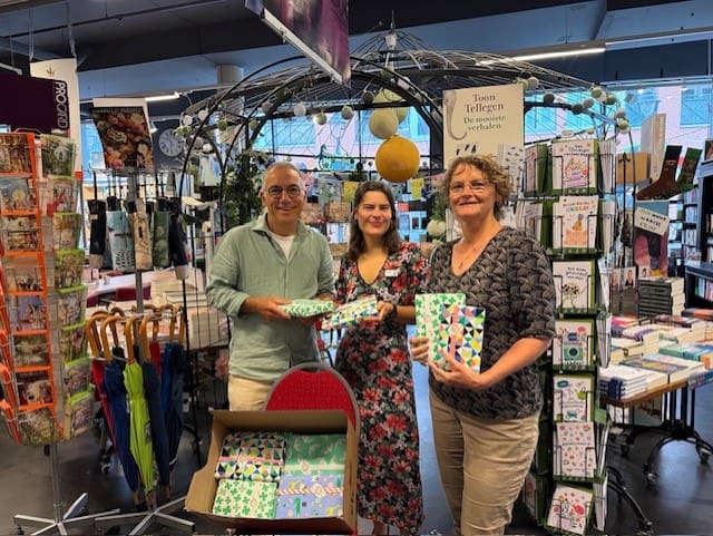 Dankzij de gedoneerde boeken, aangeboden door Boekhandel van der Meer uit Noordwijk, kunnen de kinderen in de zomervakantie doorgaan met lezen. Margreet Dekker, één van de coördinatoren van Taallokaal en voorzitter Herman Bekkers hebben de jeugdboeken in ontvangst genomen.