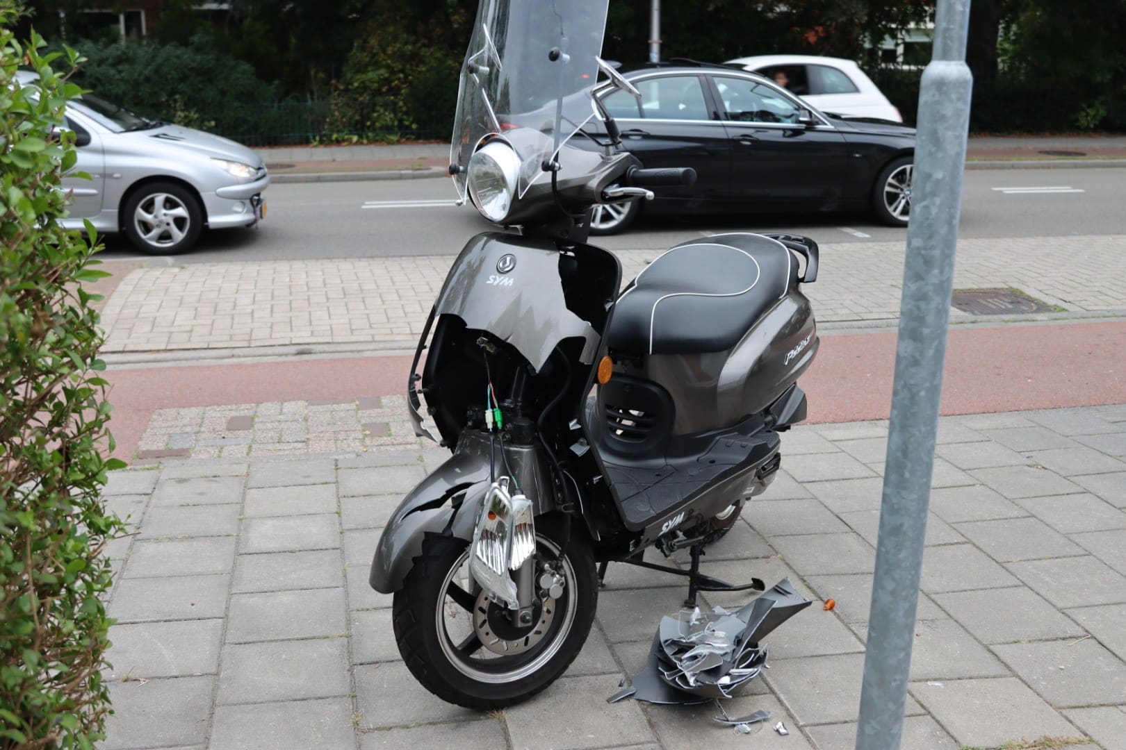 De scooter en de auto liepen schade op.