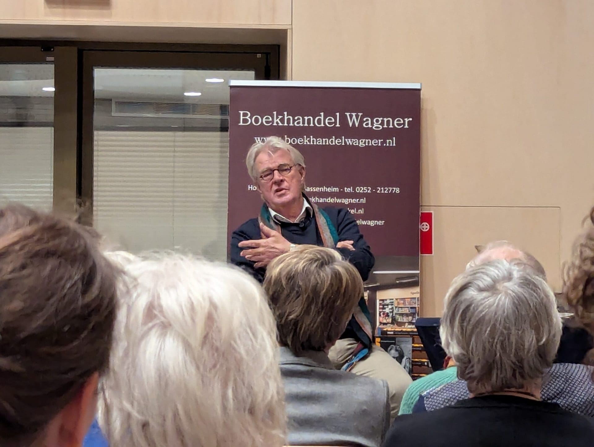 De artistieke duizendpoot was uitgenodigd door boekhandel Wagner in Sassenheim om over zijn leven en werk te praten. Vanwege de grote belangstelling was de bijeenkomst verplaatst naar het kerkelijk centrum Het Venster. Daar werd hij geïnterviewd door zijn uitgever Jasper Post.
