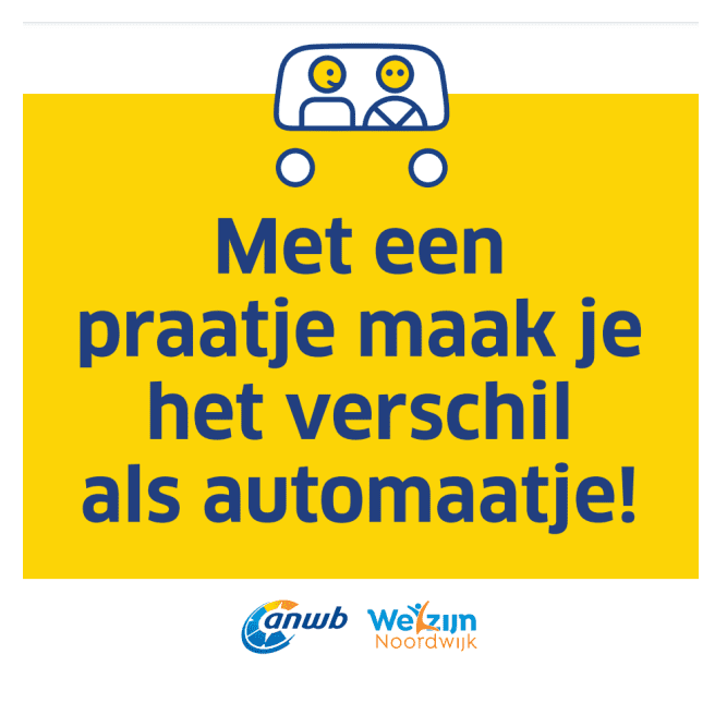 Noordwijk/Noordwijkerhout/De Zilk – Welzijn Noordwijk is op zoek naar nieuwe chauffeurs voor het ANWB AutoMaatje, een initiatief om mensen die minder mobiel zijn er op uit te laten trekken. Zo kunnen ze naar hun afspraak in het ziekenhuis, op familiebezoek of weer eens naar een museum. De organisatie is vooral op zoek naar chauffeurs in Noordwijkerhout en De Zilk.