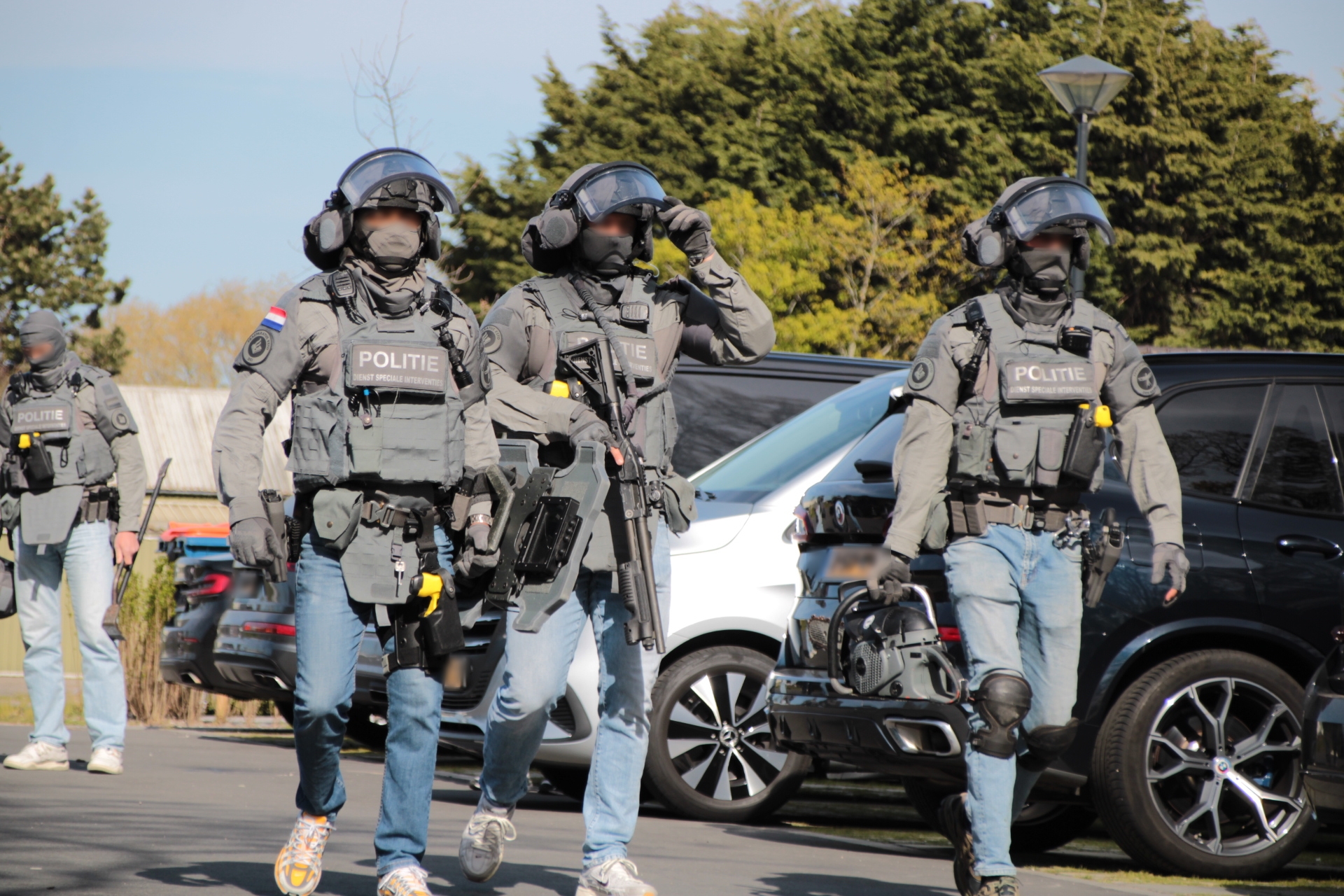 Naast het arrestatieteam werden ook veel overige disciplines opgeroepen. Meerdere politie-eenheden waaronder hondenbegeleiders, brandweervoertuigen en de ambulancedienst kwamen ter plaatse. Het arrestatieteam heeft zich ter plaatse omgekleed en klaargemaakt om het pand te betreden.