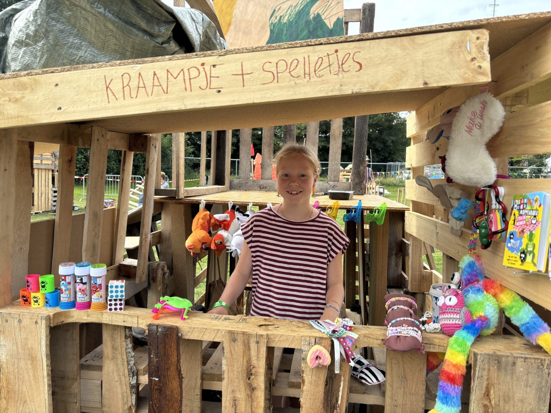 Op het veld zijn verschillende bouwwerken te vinden, veel met een glijbaan, maar ook een paar creatieve ondernemingen. Zo heeft een van de meisjes een kraampje gemaakt van hout en is ze gestart met de verkoop van knuffels en bellenblaas. De enige betaalwijze? Bierdopjes! Ze heeft zelf ook geen idee wat de waarde ervan is, maar dat maakt de lol er niet minder om.