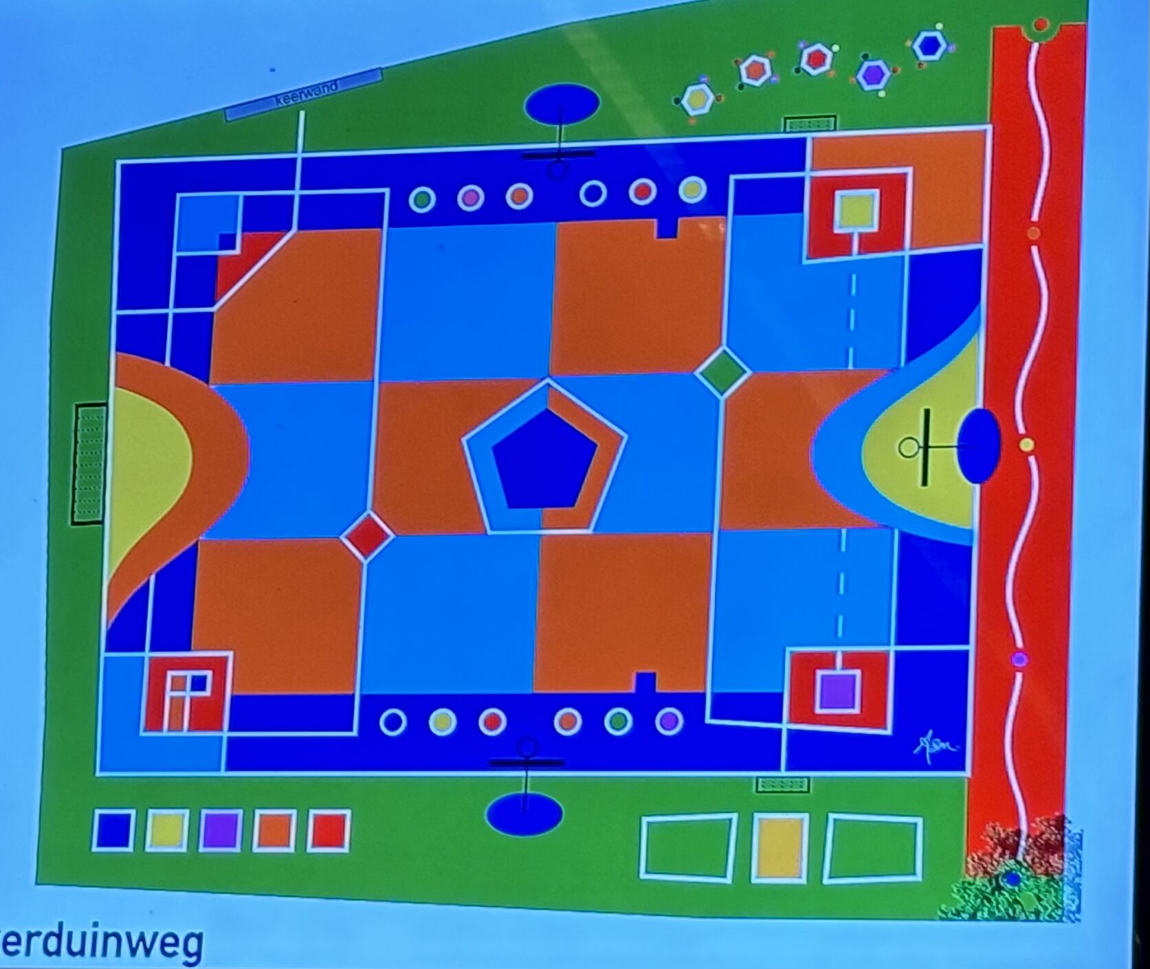 De gesprekken met kinderen met toenmalige groep 8 leerlingen bracht belangrijke voorkeuren aan het licht. Zo vinden zij de kleur van het veld erg belangrijk: het moet aantrekkelijk en opvallend zijn. Daarnaast gaven zij aan dat sporten zoals voetbal, basketbal, netspelen en vooral het populaire king– een spel dat via basisscholen uit Amerika is overgekomen – niet mogen ontbreken. Het ontwerp, dat tijdens de informatieavond werd gepresenteerd, kreeg eerder die dag goedkeuring van zowel de huidige groep 8-leerlingen als de eerstejaars die oorspronkelijk met het idee kwamen.