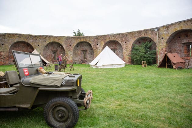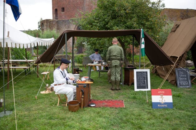 “De oorlog komt steeds verder van ons af te staan”, zegt Matthijs van Kranenburg. Hij heeft een kaki-kleurig officierspak aan en een statige pet van de Nederlandse Marine op zijn hoofd. “Het is onder andere aan de musea en het Living-History om de verhalen in leven te houden.”