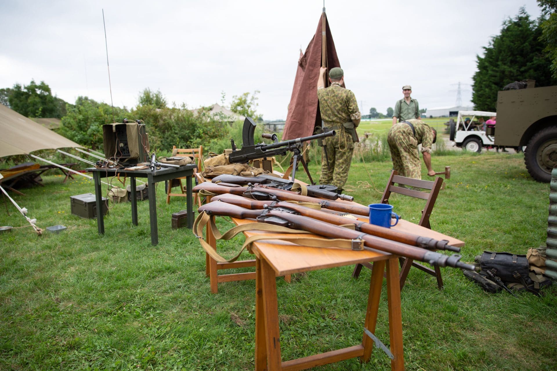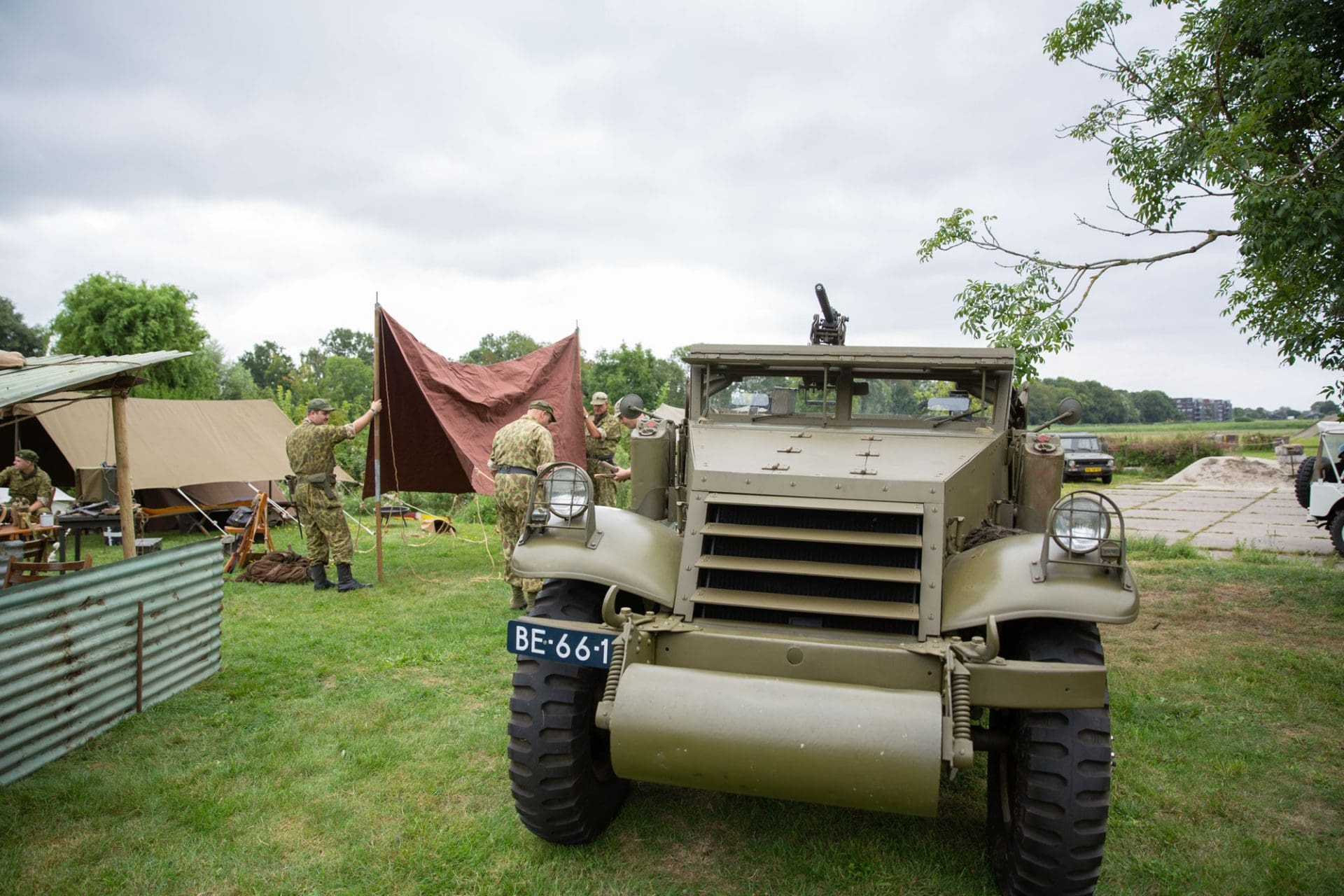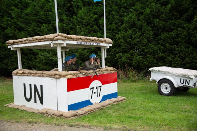 Als je het terrein van Kasteel Teylingen zaterdagochtend oploopt, lijkt het net alsof je je in militair gebied bevindt. Maar dan een mengelmoes van bataljons bij elkaar. Drie Nederlandse blauwhelmen van de vredesmissie in Libanon (1979 – 1985) stappen met grote passen door het grasveld voor het kasteel. Het drietal loopt langs de mariniers uit de jaren 40, die dan net beginnen met de bereiding van een warme lunch.