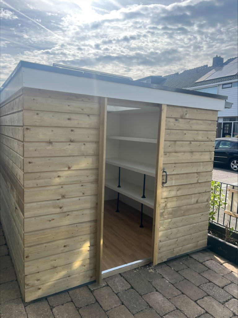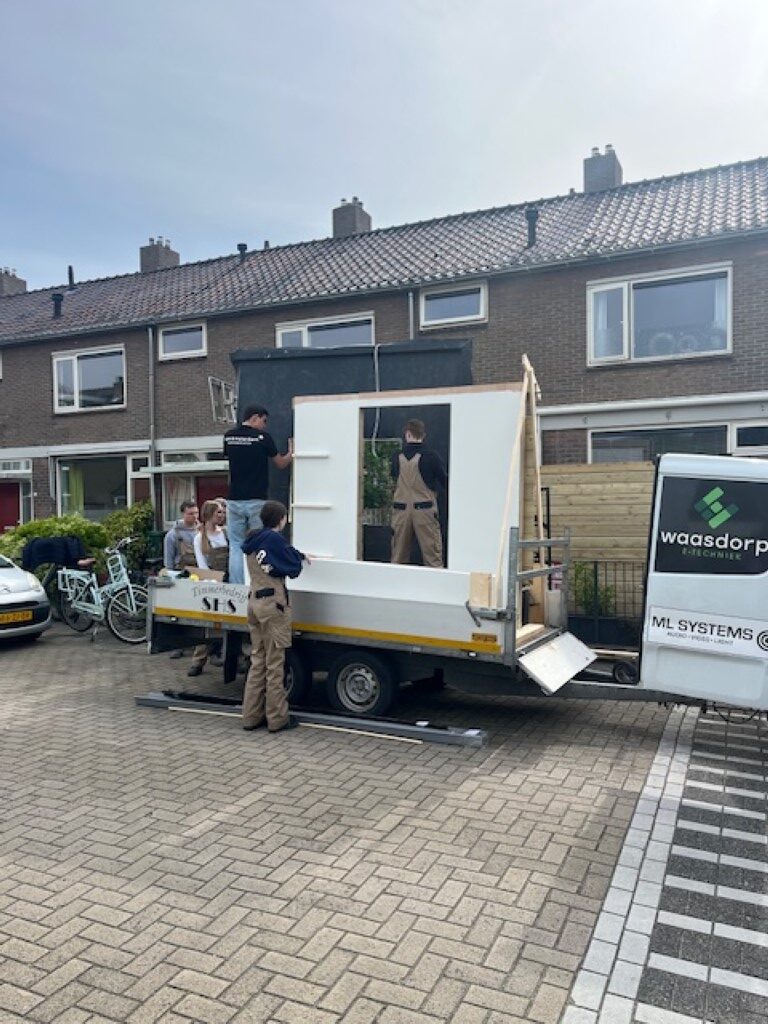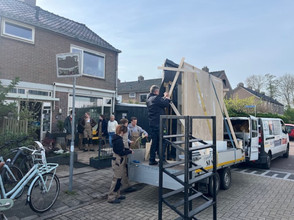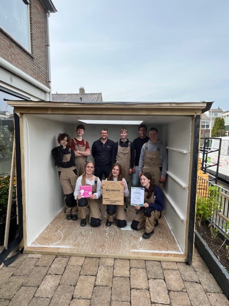 De leerlingen kregen bij de start van het project de vrije hand. Nadat zij zich hadden verdiept in het werk van De Roze Hulp, kwamen zij met een eigen ontwerp, een offerte en een presentatie. Het eindresultaat is woensdag geplaatst: de kast is voorzien van een schuifdeur, een dakgoot, een raam in het dak en elektriciteit voor verlichting. Volgens Noordover zijn de leerlingen, die over drie weken examen doen, ‘echt vakmensen’ die met dit project ‘absoluut geslaagd’ zijn.