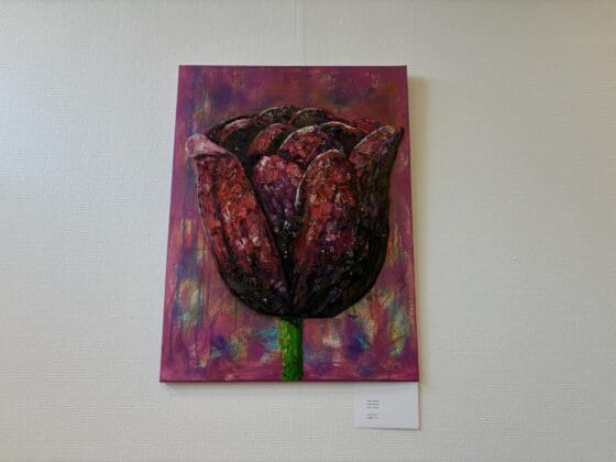 Lisse –  Vanwege het 40-jarig jubileum van Museum de Zwarte Tulp opende kunstenaarscollectief KuCo zaterdag de expositie ‘De Zwarte Tulp’ in de bibliotheek. Schilderijen, gedichten, foto’s en andere voorwerpen met in de hoofdrol de zwarte tulp zijn tot eind september te bekijken.