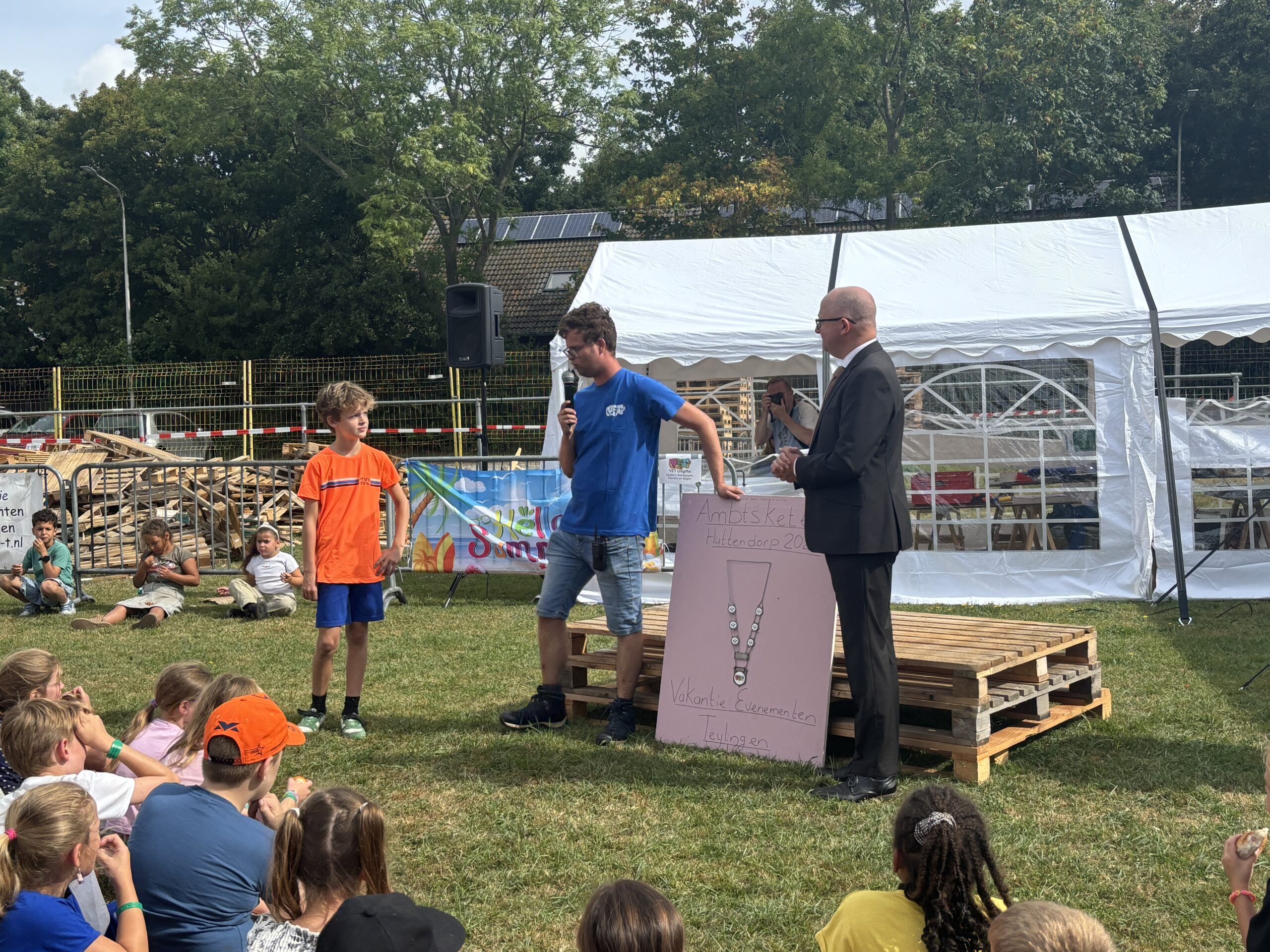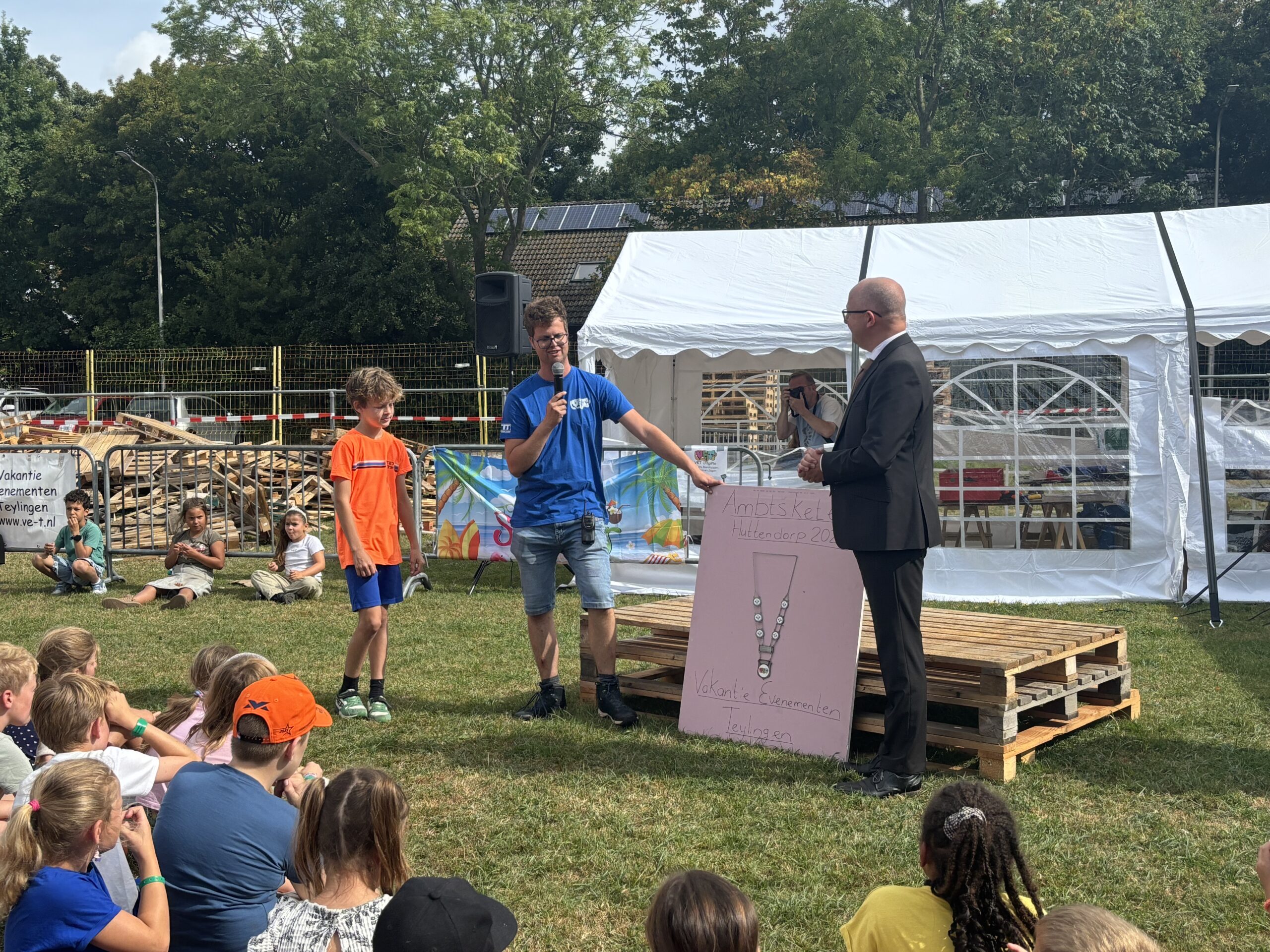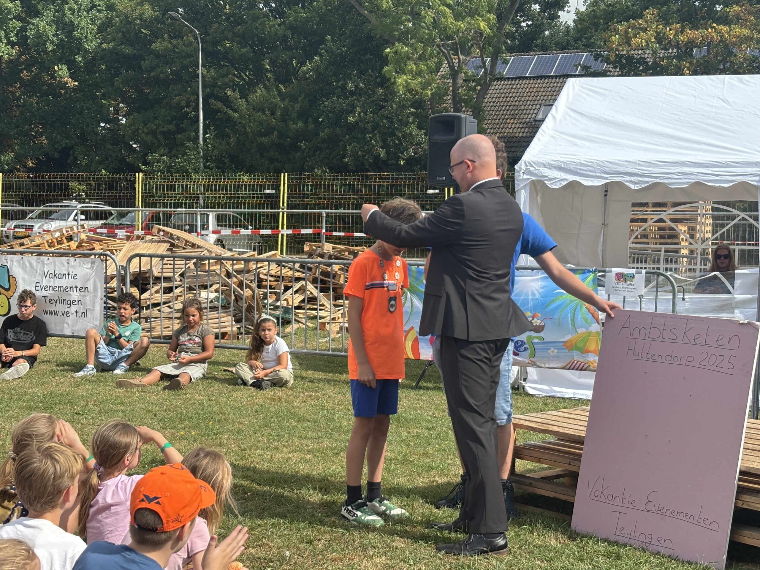Voorhout – Guus is gekozen tot burgemeester van Huttendorp Voorhout! Tijdens een plechtige ceremonie werd hij door wethouder Frans Nederstigt van Teylingen ingezworen en legde hij de eed af. Hij ontving daarbij zowel een ambtsketen als een bord met de tekst Hut van de burgemeester.