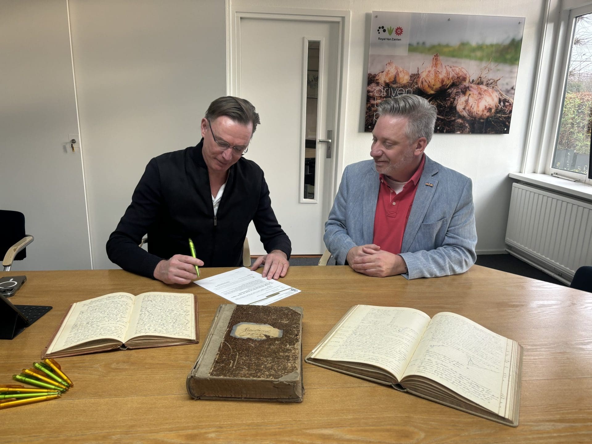 Hillegom – Het historische archief van Koninklijke Van Zanten, één van de oudste bloembollenbedrijven van Nederland, is vanaf woensdag officieel in handen van de Stichting Vrienden van Oud Hillegom. Het archief vertelt het verhaal van een Hillegoms familiebedrijf dat sinds 1862 actief was in de bollenteelt en internationaal handelde.