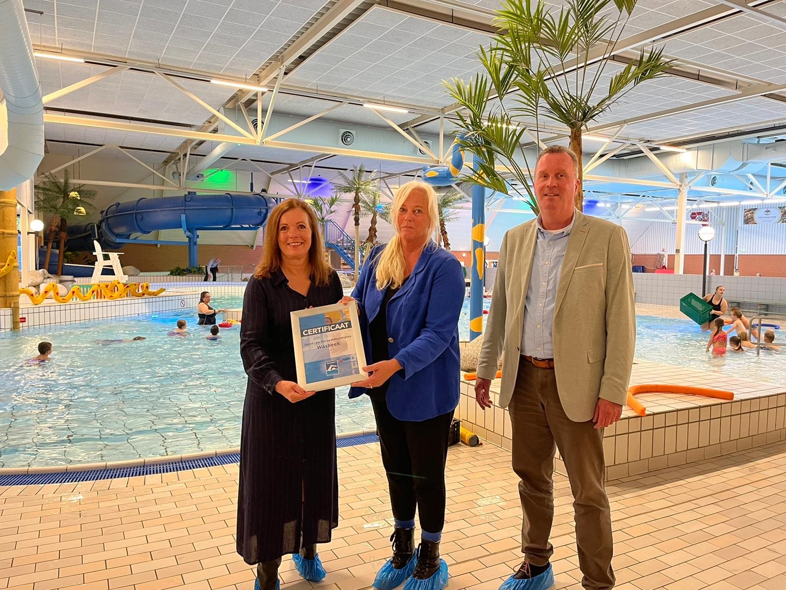 Wethouder Reny Wietsma heeft het certificaat persoonlijk in het zwembad overhandigd.