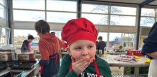 Voorhoutse kinderkookclub serveert wethouder lekkere macaroni