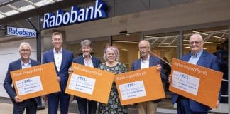 Rabobank kantoor op symbolische wijze geopend met uitreiking van vier cheques