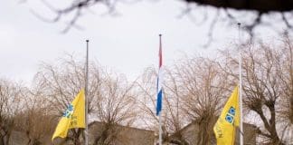 Vlaggen halfstok bij gemeentehuis Hillegom