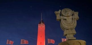 Vuurtoren Noordwijk oranje verlicht tijdens Orange the World