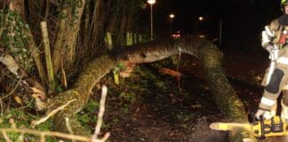 Deel zware boom valt spontaan omlaag in Noordwijk en blokkeert de...