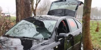 Auto raakt van N206 Noordwijk botst tegen bomen tijdens hevige hagelbui