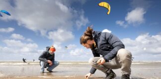 Schelpen tellen aan het strand van Noordwijk