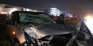 Crash op A44 Sassenheim, auto schiet ruim 55 meter door