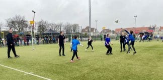Regen of niet, Noordwijkse basisschoolleerlingen gooien alle ballen in de korf