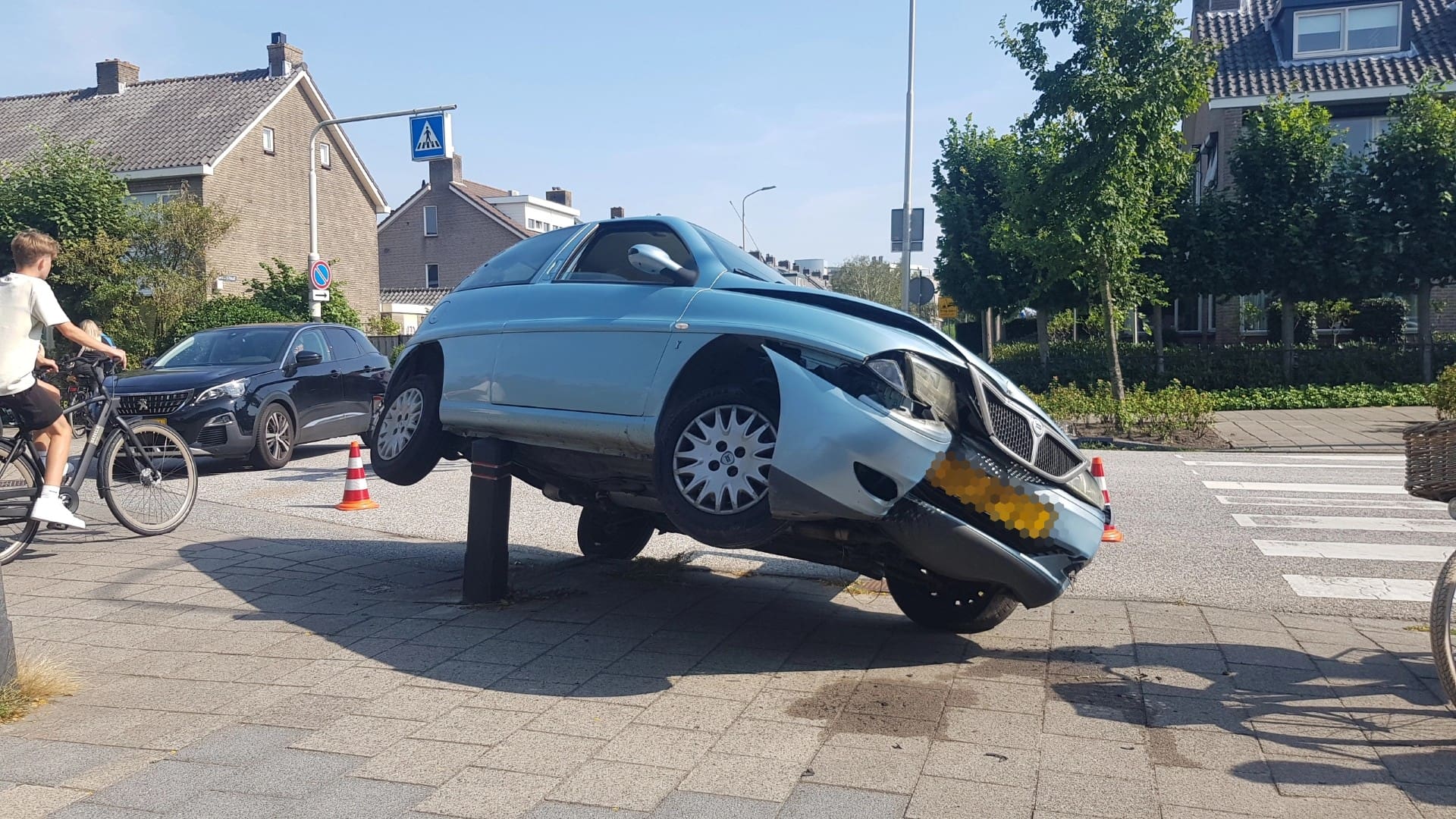 Lisse – Een auto is donderdagmiddag op de Broekweg in Lisse op een paal gebotst en blijven hangen. De bestuurder is door de politie aangehouden omdat hij onder invloed reed. De auto is zwaar beschadigd en is weggesleept. Veel mensen stonden verbaasd te kijken naar het resultaat van het ongeluk.