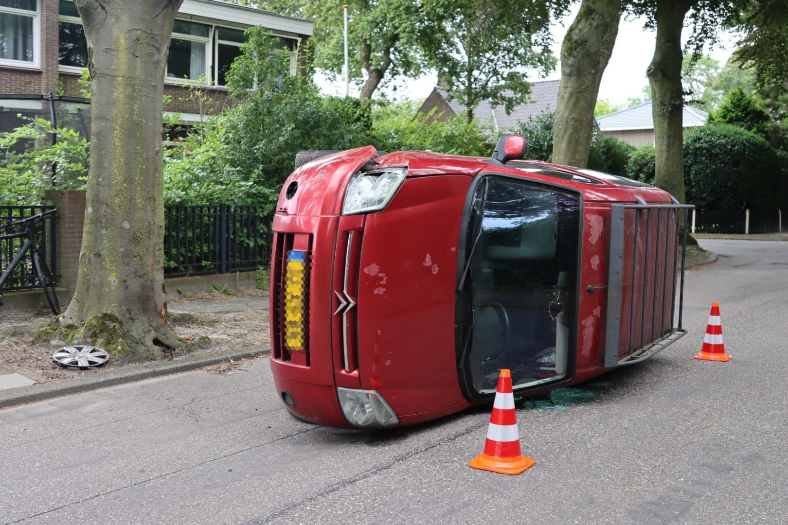 Sassenheim – Aan de W. Warnaarlaan in Sassenheim is dinsdagochtend een auto op een boom gereden en vervolgens op zijn kant op de weg terechtgekomen. De automobiliste verloor door onbekende oorzaak de macht over het stuur. Zij moest door de brandweer uit haar auto worden bevrijd en is naar het ziekenhuis gebracht. De auto liep veel schade op en is weggesleept.