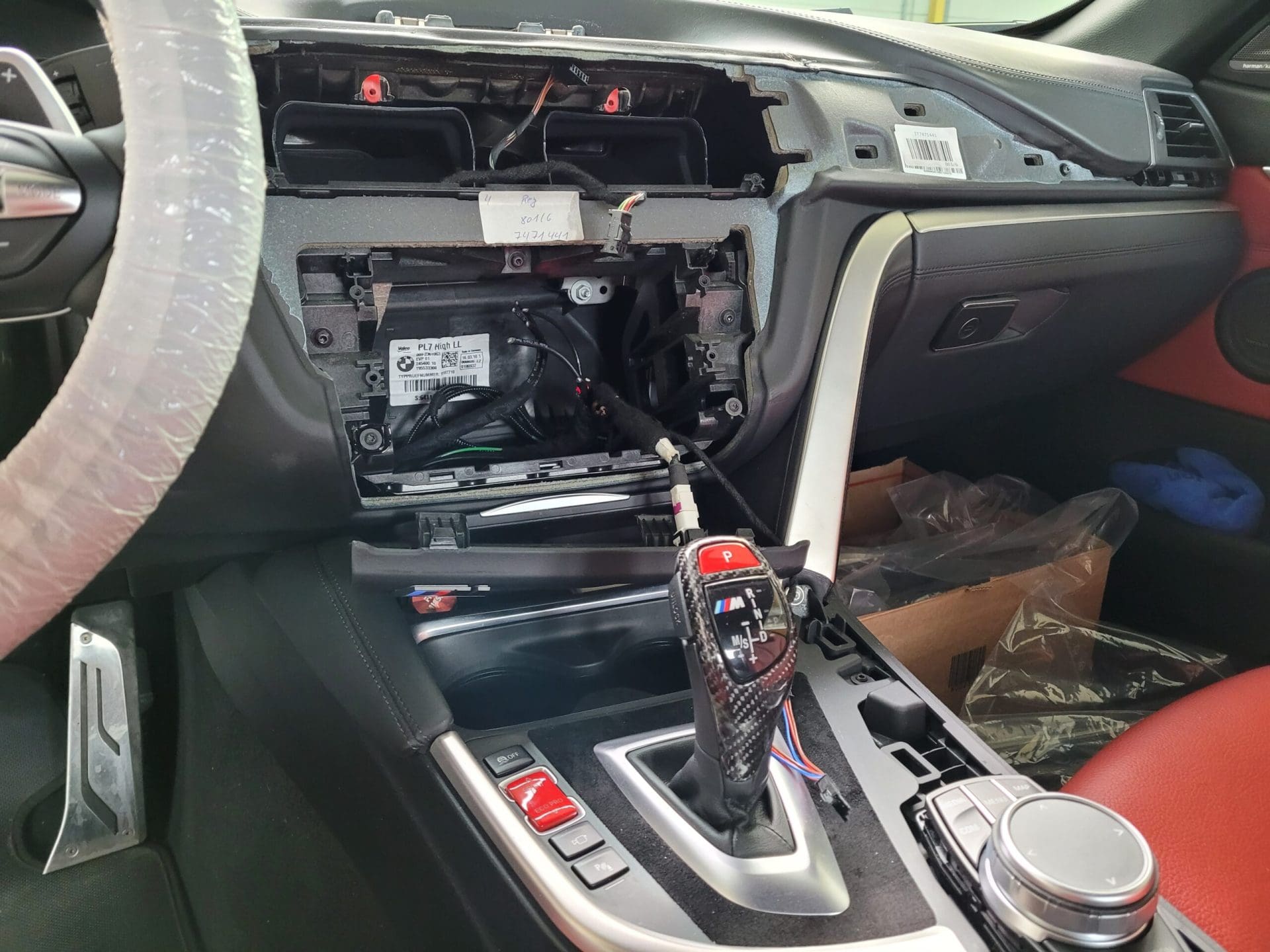 Autoschade Herstel Breed Noordwijk heeft net weer twee BMW’s binnengekregen die zijn gestript. Directeur Arjan Baars laat de auto’s zien. Verschillende onderdelen van de dashboards zijn uit de auto’s gehaald. Baars: `Een van de auto’s heeft zo’n zestienduizend euro schade en de andere iets van twaalfduizend.’