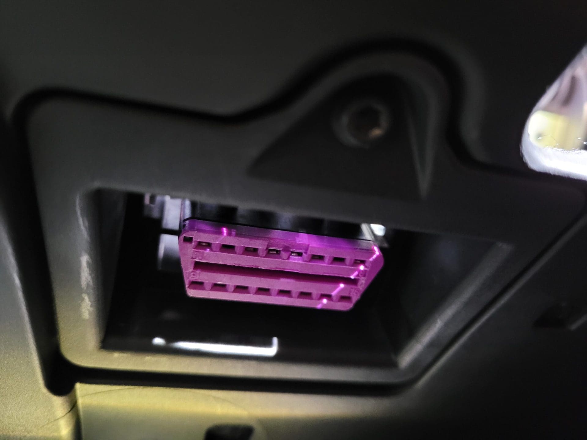 Daarna gaan ze met hun arm voorzichtig door de gebroken ruit op zoek naar de OBD-stekker. Deze diagnosestekker zit ergens in een paneel onder het stuur. De OBD-stekker wordt door garages en autodealers gebruikt om auto’s uit te lezen, te coderen en te programmeren.