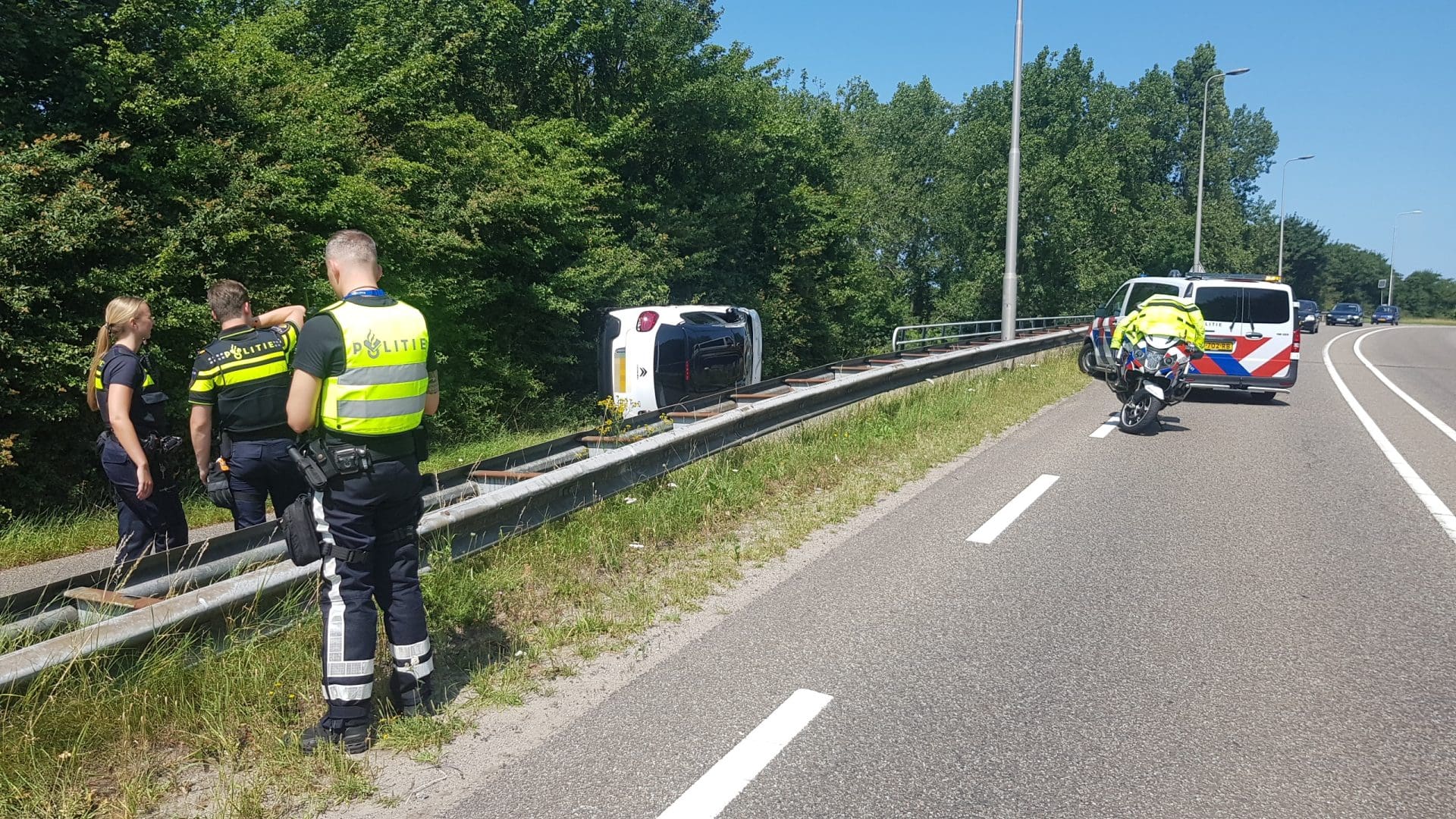 Noordwijk – Een automobilist is zaterdagmiddag door onbekende redenen op de zijkant langs de weg beland.