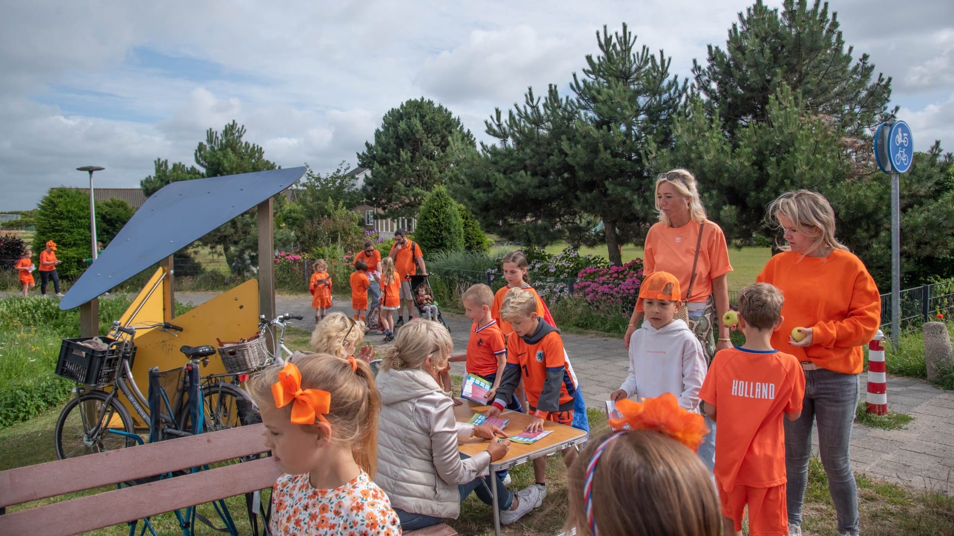 Vanwege de EK-wedstrijd van Oranje was de start van de eerste wandeling een half uur eerder, om 17.00 uur. Aan de oproep om in het oranje gekleed te komen, gaven de meeste wandelaars gehoor. In opperbeste stemming werd de eerste etappe gelopen.