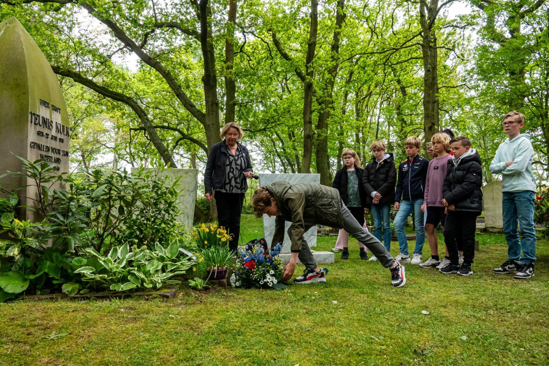 Lisse – Leerlingen van de Lissese basisscholen de Klarinet en Kindercampus Joseph bezochten, samen met burgemeester Lies Spruit en wethouder Riet Austie, oorlogsgraven van overleden Lissers en het B-17 monument in De Engel naar aanleiding van Dodenherdenking op 4 mei.