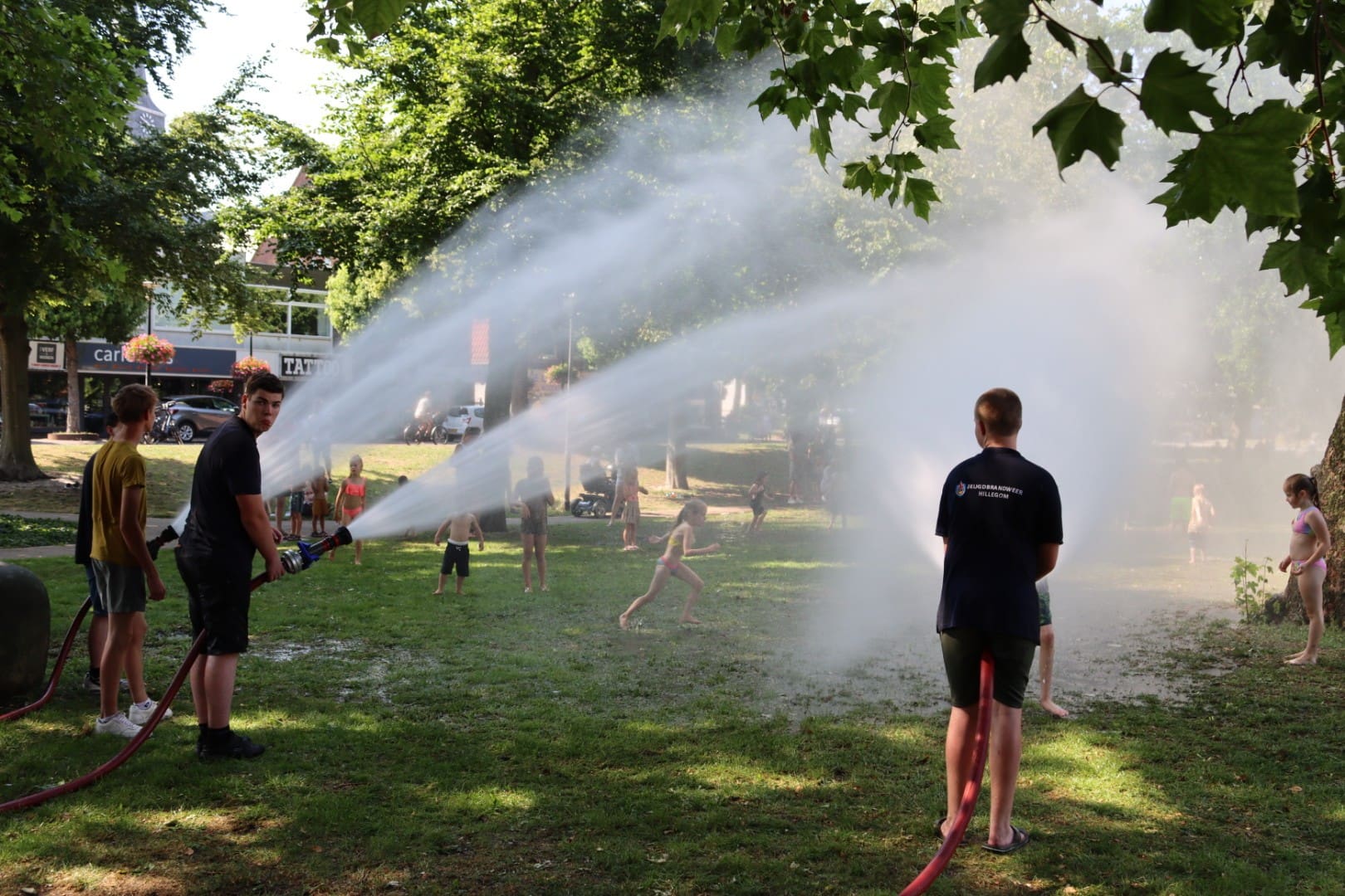 Hillegom – De brandweer van Hillegom heeft dinsdagmiddag voor verkoeling gezorgd in de Hoftuin in Hillegom. Vanaf 16:00 uur gingen de waterspuiten aan en kon er met water worden gespeeld. Het was voor jong en oud een ideale mogelijkheid om even af te koelen nu de temperatuur recordhoogtes bereikt.