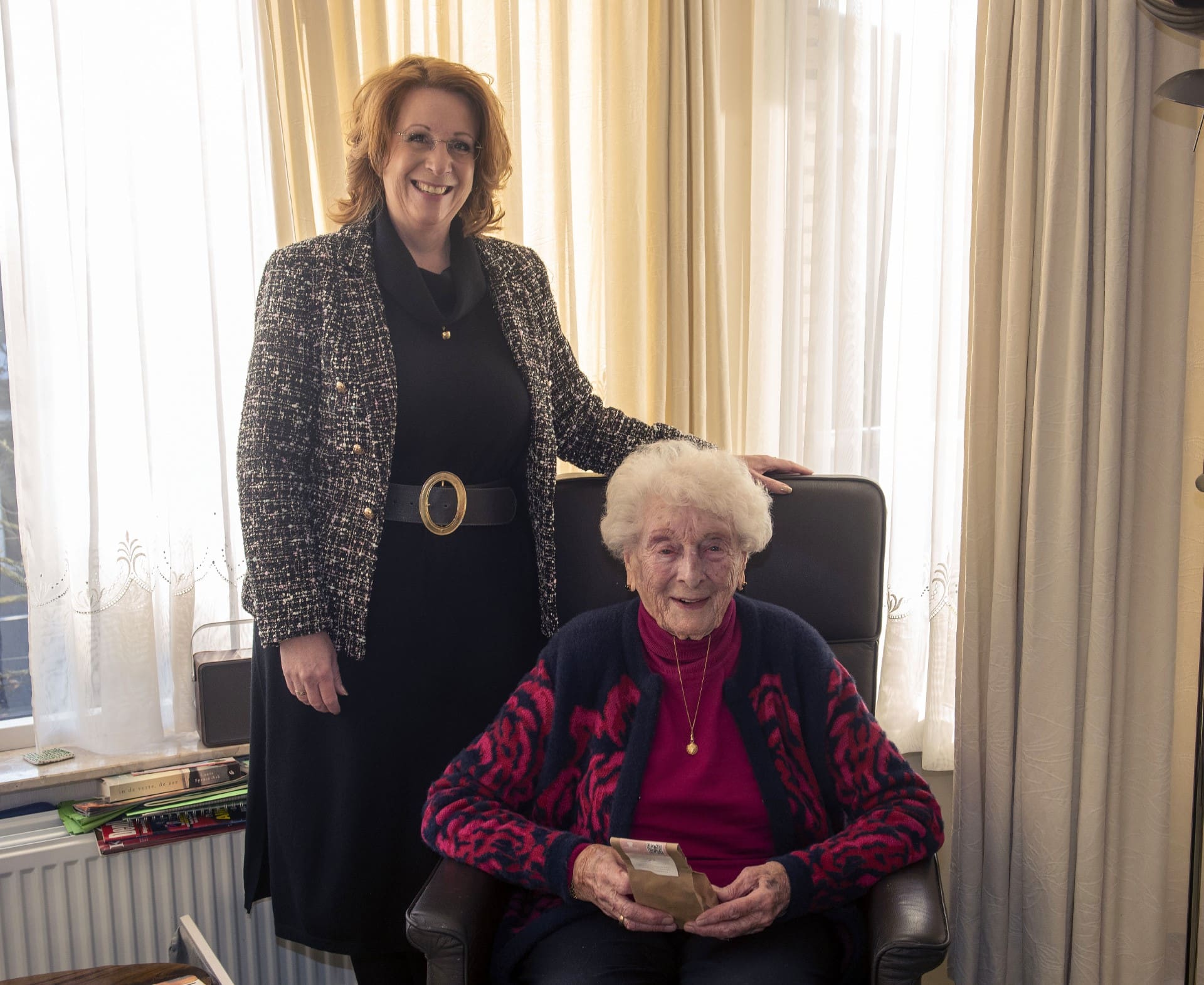 Voorhout – Burgemeester Carla Breuer was woensdagochtend op bezoek bij mevrouw van der Meer. Deze krasse Voorhoutse vierde op 27 december haar 103e verjaardag. Namens het gemeentebestuur ontving mevrouw van der Meer de hartelijke felicitaties en een leuke attentie uit handen van de burgemeester. Een gebaar dat door de jarige bijzonder op prijs werd gesteld.