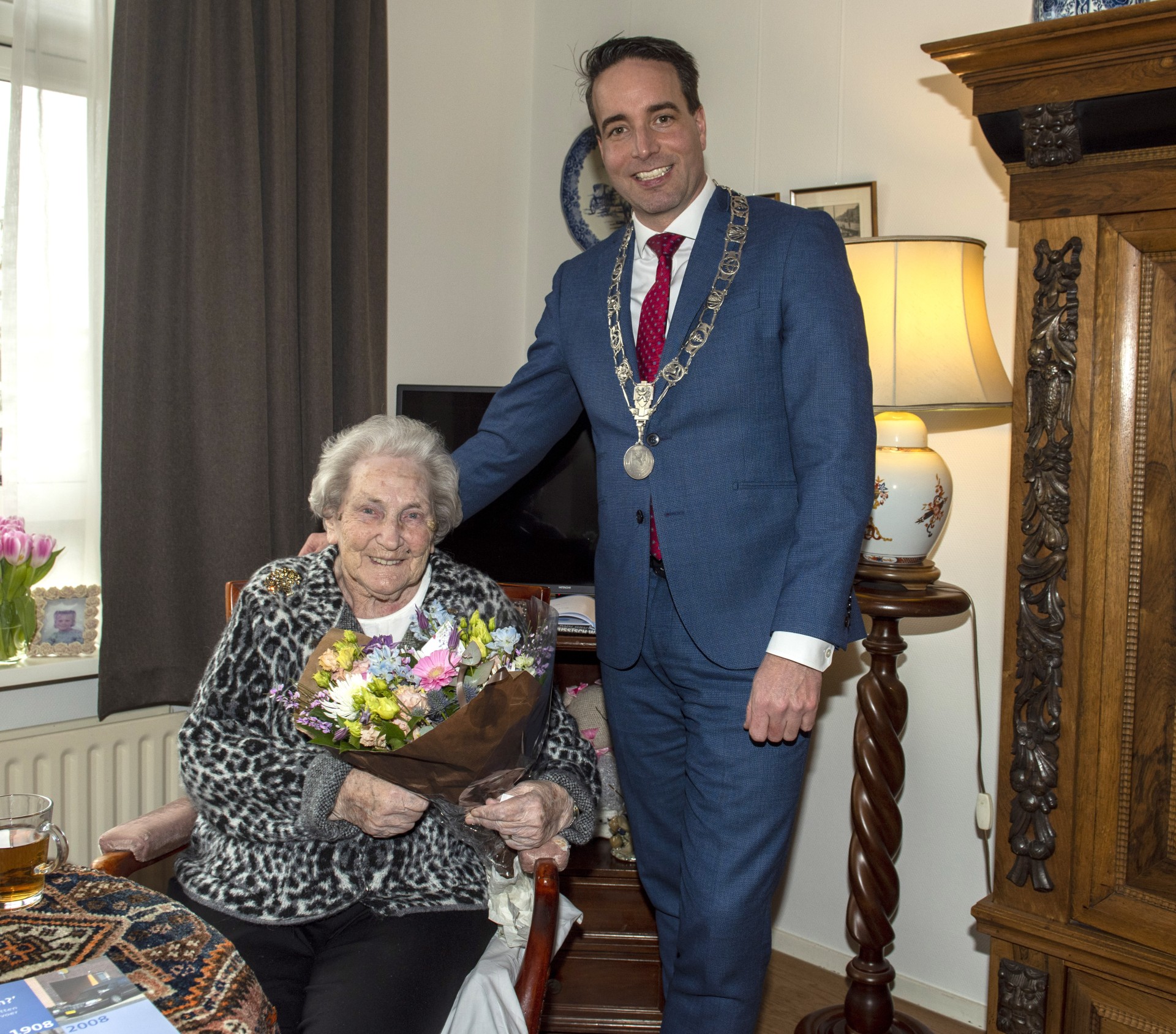 Lisse – Burgemeester Nieuwenhuizen heeft dinsdag een bezoek gebracht aan mevrouw C.M. (Sientje) van der Putten-Rijnbeek in Lisse. Zij vierde haar 101e verjaardag. De burgemeester feliciteerde haar persoonlijk met deze bijzondere mijlpaal.