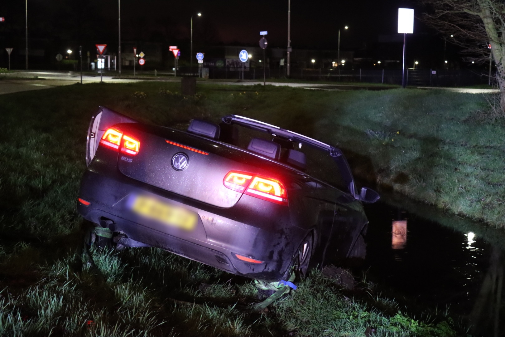 Noordwijkerhout – Een automobilist is met zijn cabrio in de nacht van vrijdag op zaterdag gevaarlijk boven een sloot komen te hangen langs de ’s Gravendamseweg N443 in Noordwijkerhout.