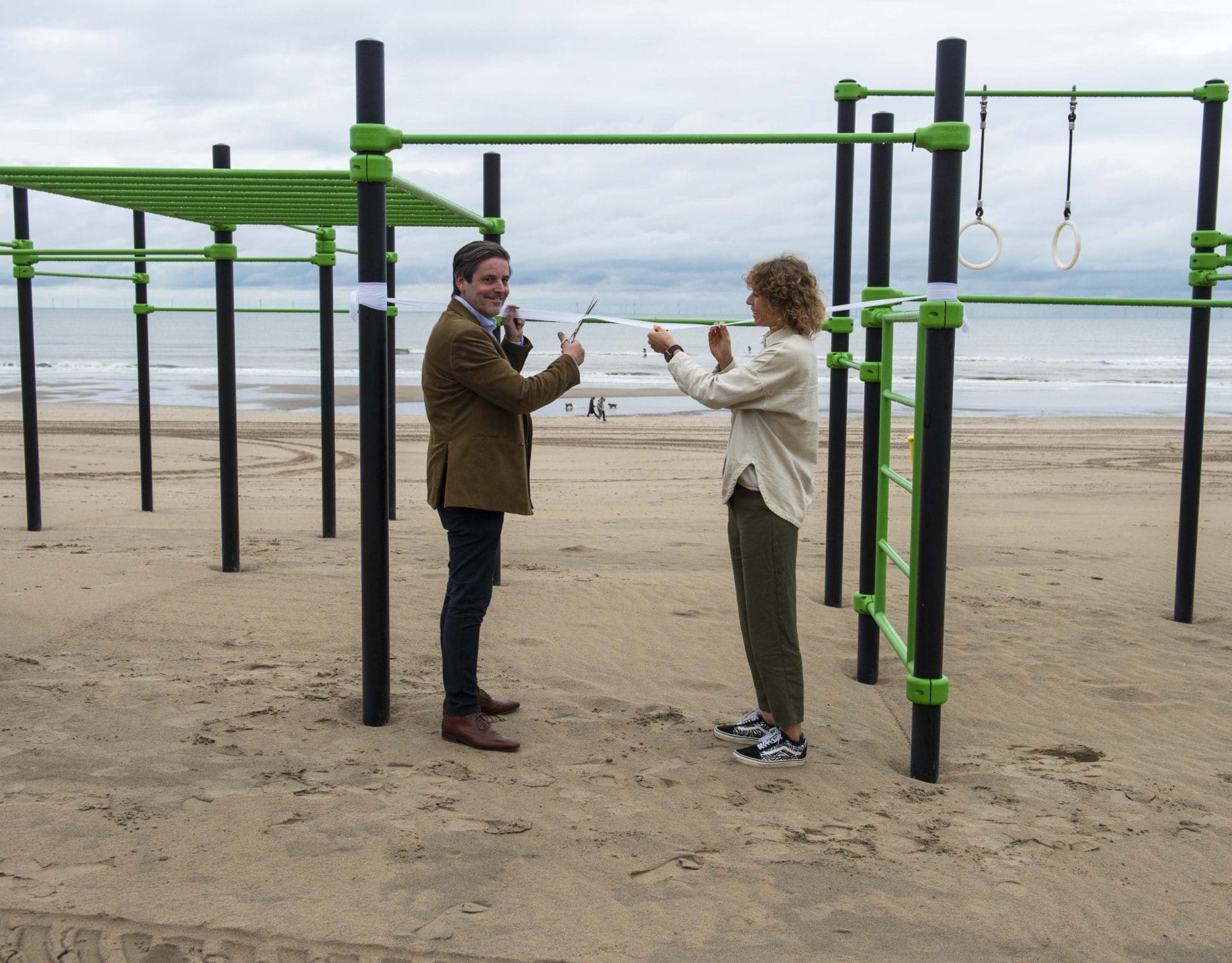 Noordwijk – Bij de afrit op Koningin Astrid Boulevard 103, ter hoogte van de Kust-surfvereniging Noordwijk, is het gloednieuwe Calisthenics-sportpark geopend. Wethouder Dennis Salman was aanwezig om de sporttoestellen officieel te openen. Met een uitzicht op zee biedt dit park een unieke gelegenheid om te sporten en te fitnessen.
