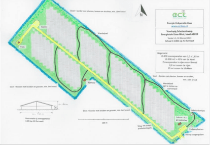 In de geplande energietuin komen zonnepanelen op 1,65 ha, dat is 43% van het terrein. Naast een schuurtje, een bijenstal en een Trafo-gebouwtje komt er geen bebouwing. Het project met bloemrijk grasland, insectenhotels en poelen moet de biodiversiteit verbeteren.