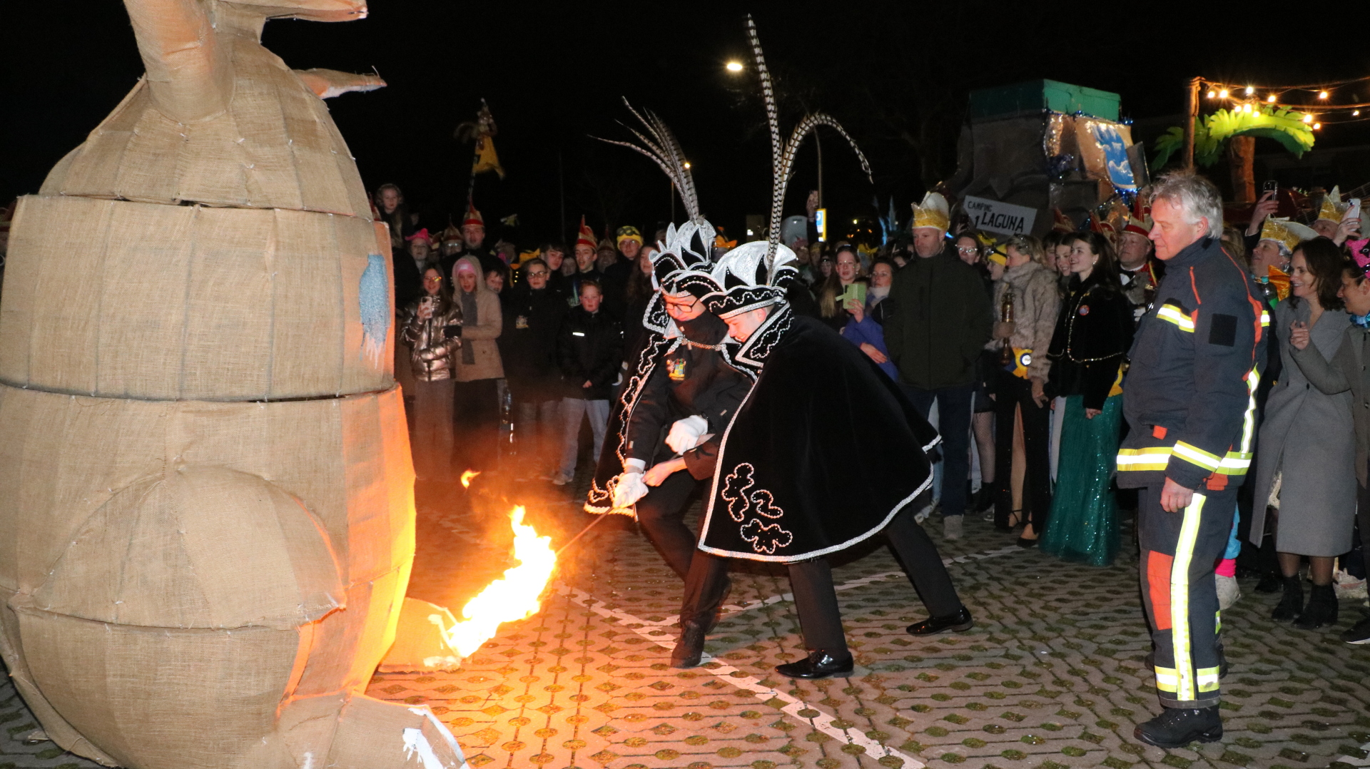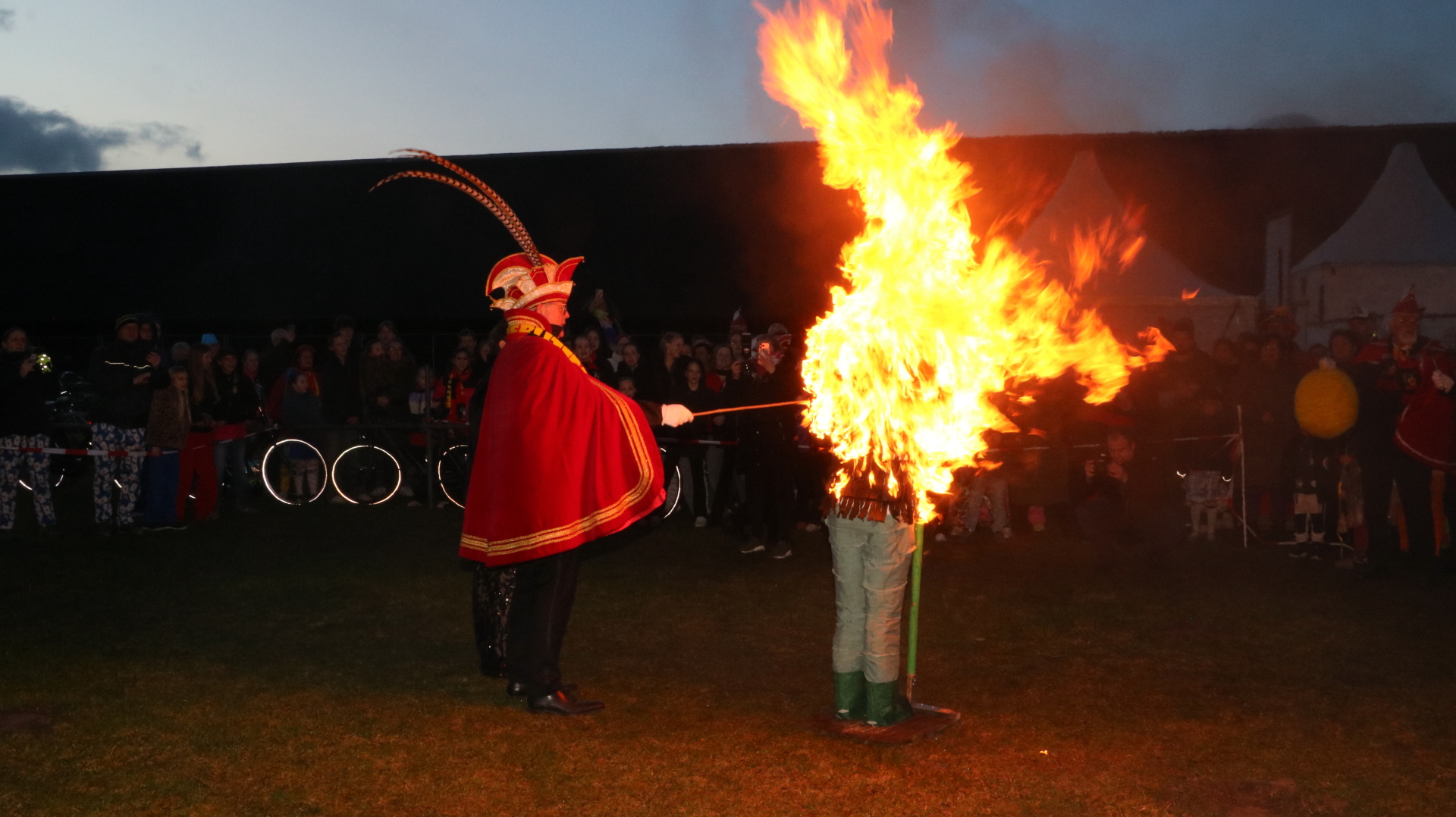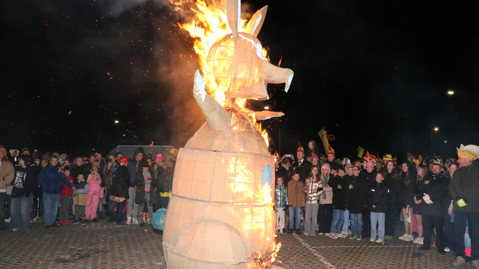 Noordwijkerhout – Het carnaval 2026 is dinsdag in stijl afgesloten in Noordwijkerhout met de Konijnverbranding. Maar eerst was er nog de Kroegentocht. De kroeglopers gingen te voet, op de fiets of met de bus van kroeg naar kroeg. In de avond trok het carnavalsgezelschap naar de Brink. Daar was onder toeziend oog van het prinsenpaar, B&W en vele carnavallers de Konijnverbranding, de laatste officiële carnavalshandeling. Daar werd ook de sleutel van het dorp weer ingeleverd bij burgemeester Bernt Schneiders: de heerschappij van de Kaninefaaten zit er voorlopig weer op.