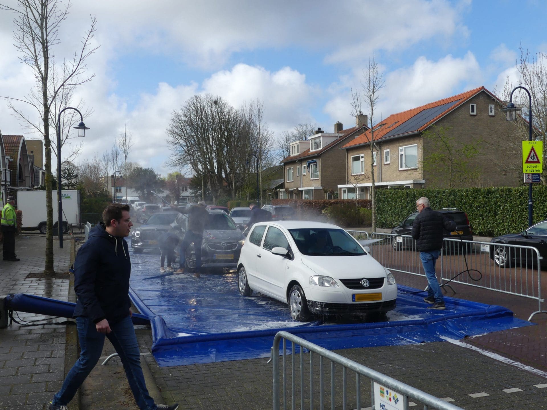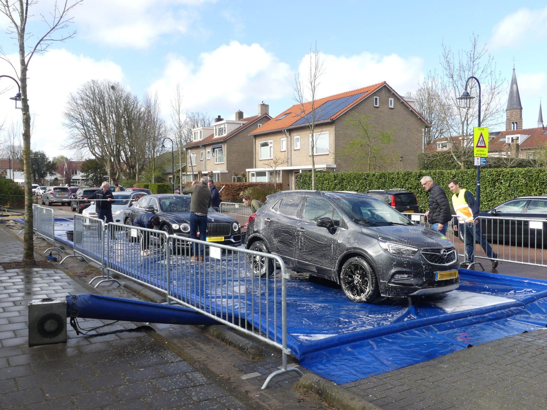 Sassenheim – 3.875 Euro hebben de muzikanten van Adest Musica zaterdag opgehaald bij de tweede editie van Carwash. Achter het Onderdak was een wasstraat-voor-een-dag ingericht. Autobezitters konden hun vervoermiddel op professionele wijze laten wassen door leden van Adest. Daar was veel animo voor: de hele dag was er filevorming in de straat.