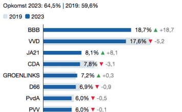 JA21 derde partij in Noordwijk, BBB de grootste bij Provinciale Statenverkiezingen