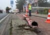 Auto botst op voorganger en rijdt lantaarnpaal uit de grond op...
