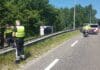 Automobilist belandt vlak voor viaduct op zijkant langs de weg