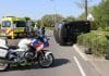Auto belandt op zijn kant in Noordwijk