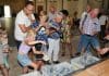 Ouderen helpen handje met bollen pellen