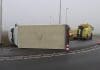 Vrachtwagen omgevallen op nieuwe rotonde N444 in Voorhout