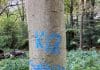 Graffiti op bomen landgoed Huys te Warmont