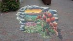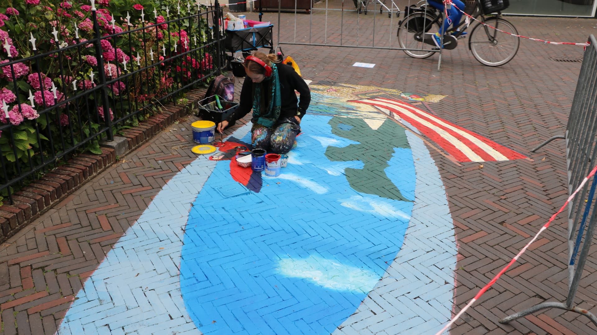 Noordwijkerhout – Rondom de Witte Kerk in Noordwijkerhout zijn meerdere tekeningen op de grond aangebracht. De artiest Graffitifun heeft de creativiteit er op losgelaten en zal in de twee weken tussen 20 juli en 6 augustus maar liefst zes tekeningen maken in het centrum van het dorp. De streetart blijft tot 31 augustus zichtbaar.