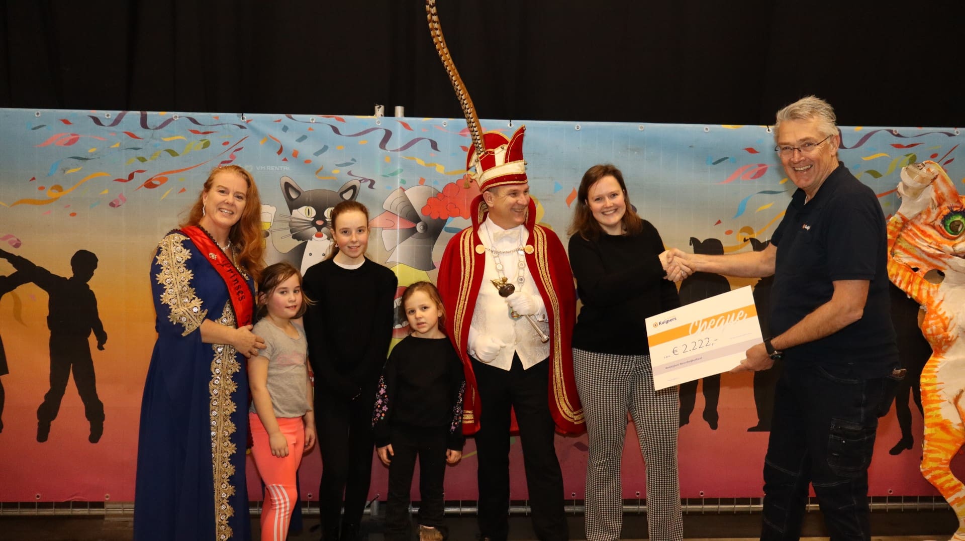 Noordwijkerhout – De dansgarde van carnavalsvereniging de Keiebijters uit Noordwijkerhout heeft dinsdagavond een cheque ontvangen van 2.222 euro. Het bedrag is overhandigd aan Daphne, de trainster van de mini dansgarde, in het bijzijn van Prins Marcus den 1ste en Prinses Xandra. Het geld zal worden besteed aan nieuwe gardepakken.