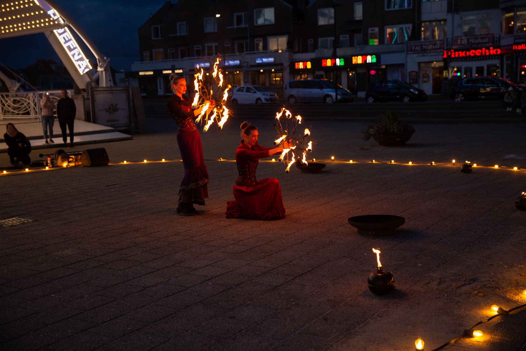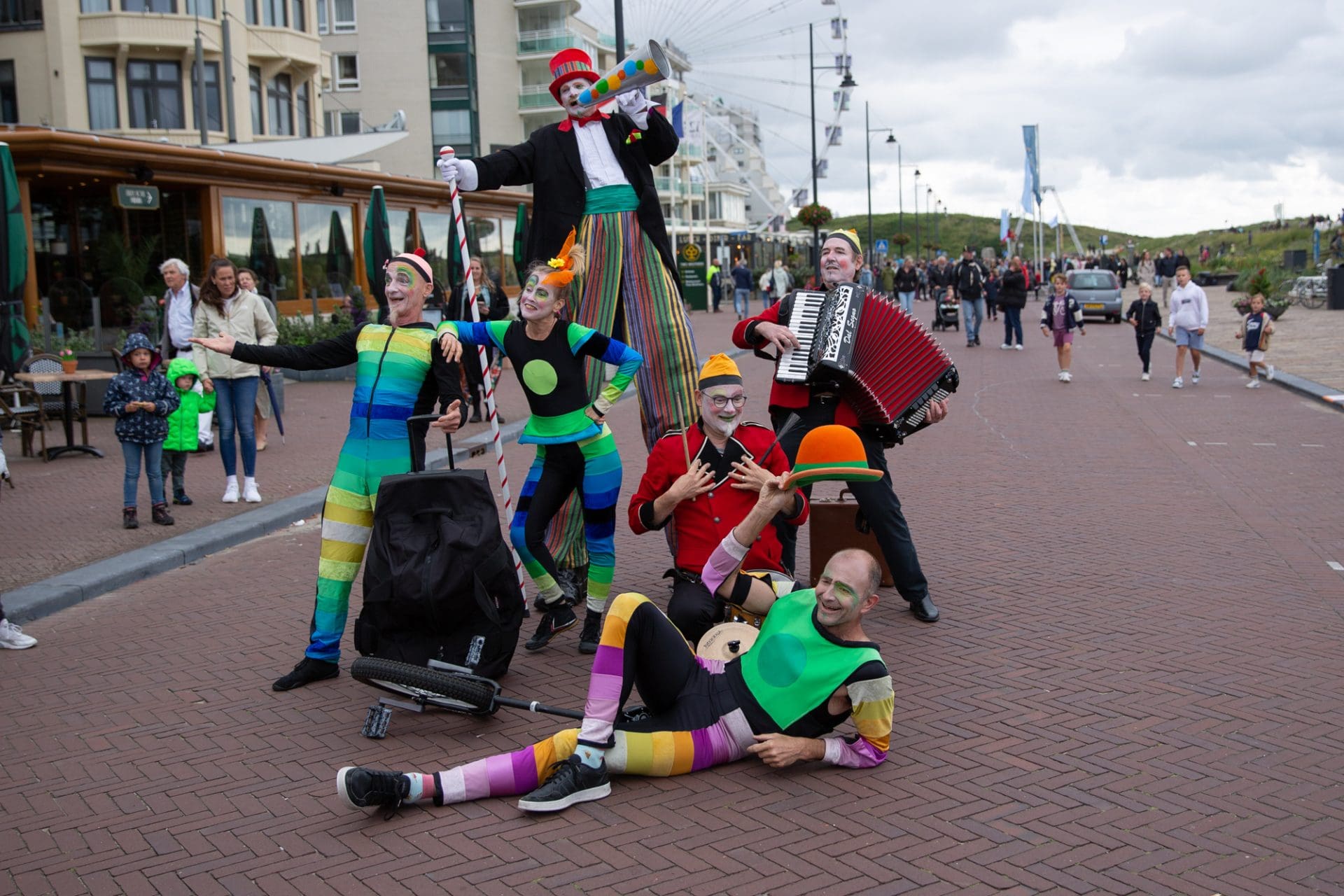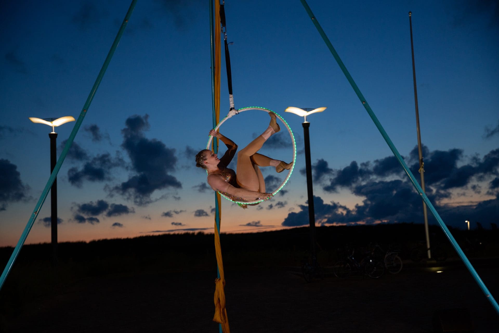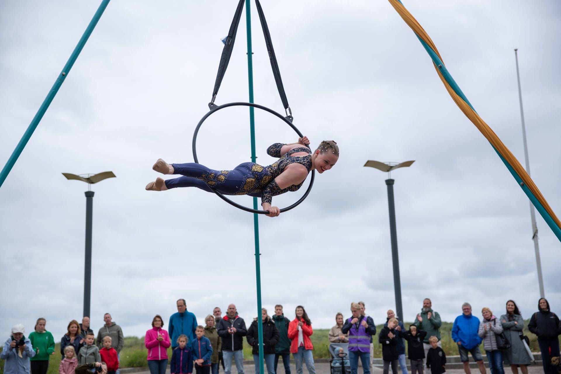 Noordwijk – Winderig was het zaterdagavond op de Noordwijkse Koningin Wilhelmina Boulevard. De acrobaten van Cirque des Dunes lieten zich er niet door weerhouden en ook het publiek kwam massaal naar de boulevard.
