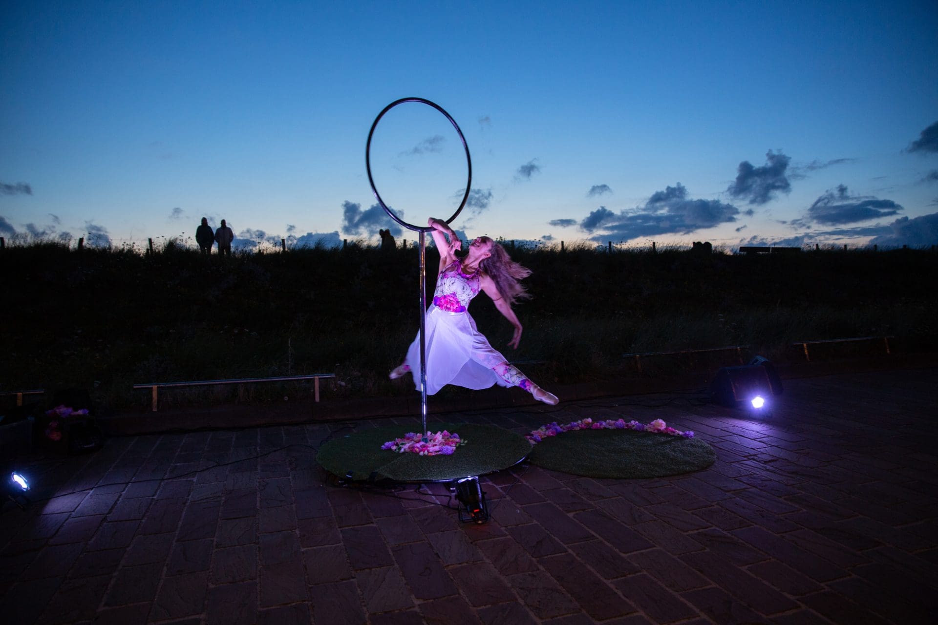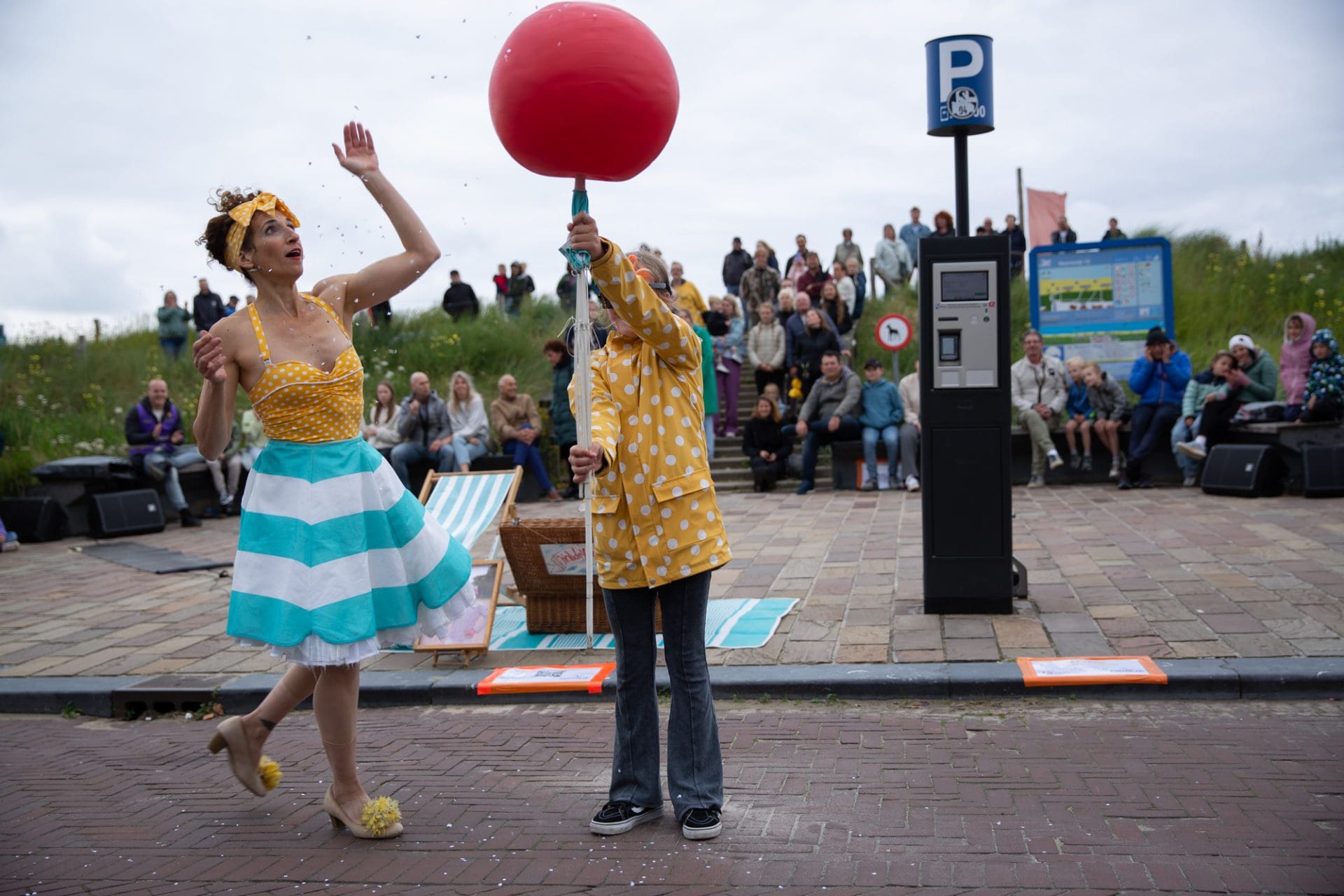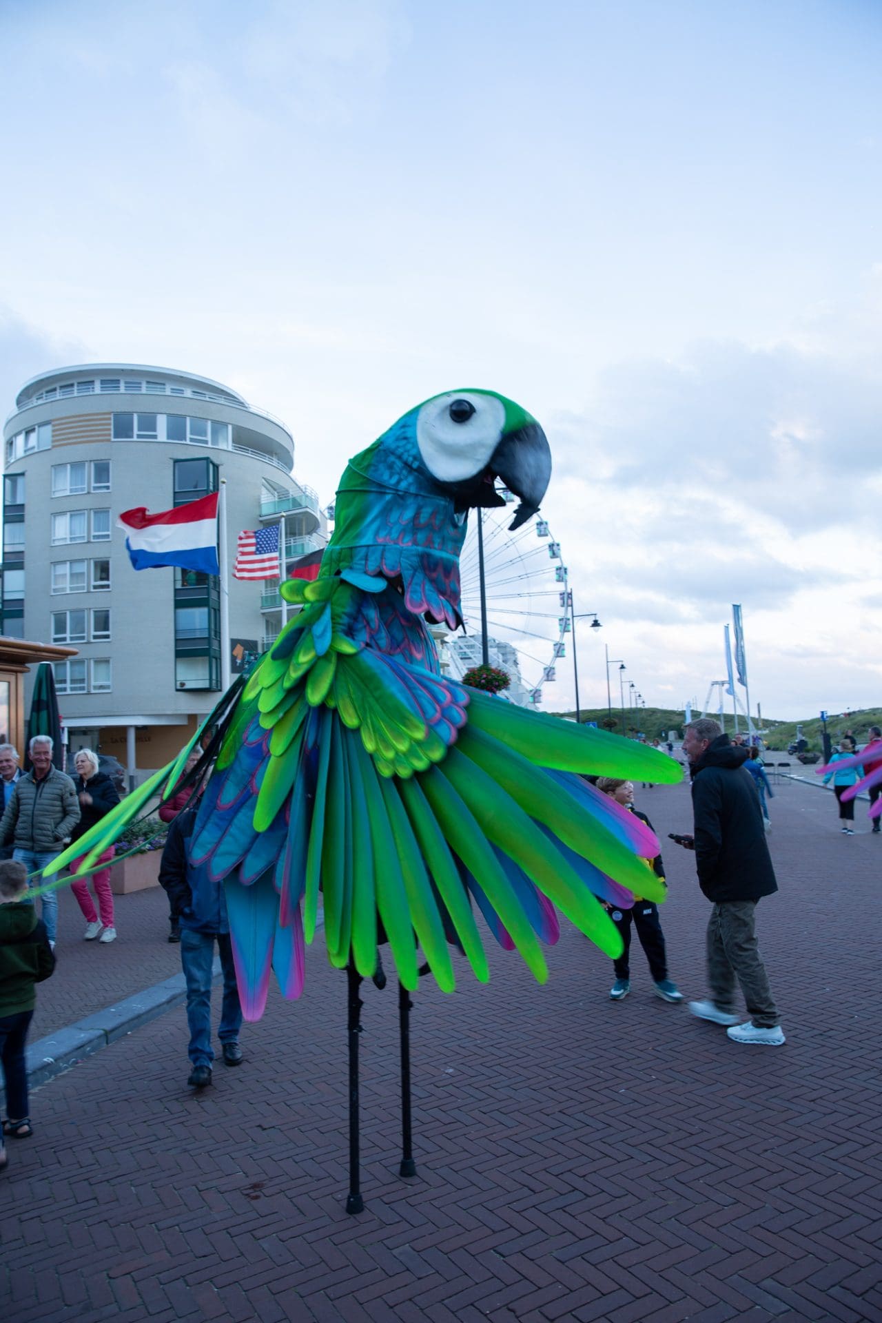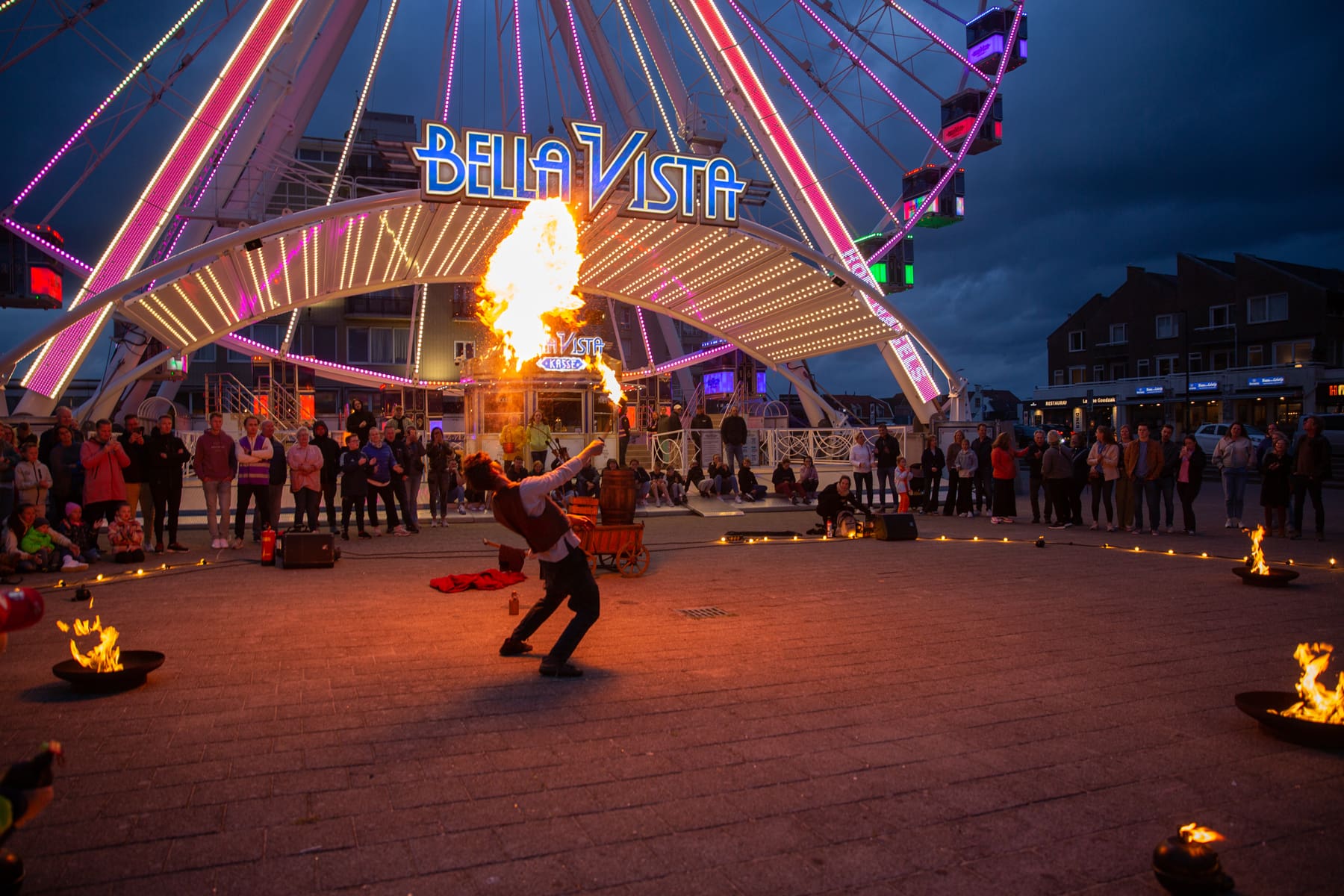 Noordwijk – Winderig was het zaterdagavond op de Noordwijkse Koningin Wilhelmina Boulevard. De acrobaten van Cirque des Dunes lieten zich er niet door weerhouden en ook het publiek kwam massaal naar de boulevard.