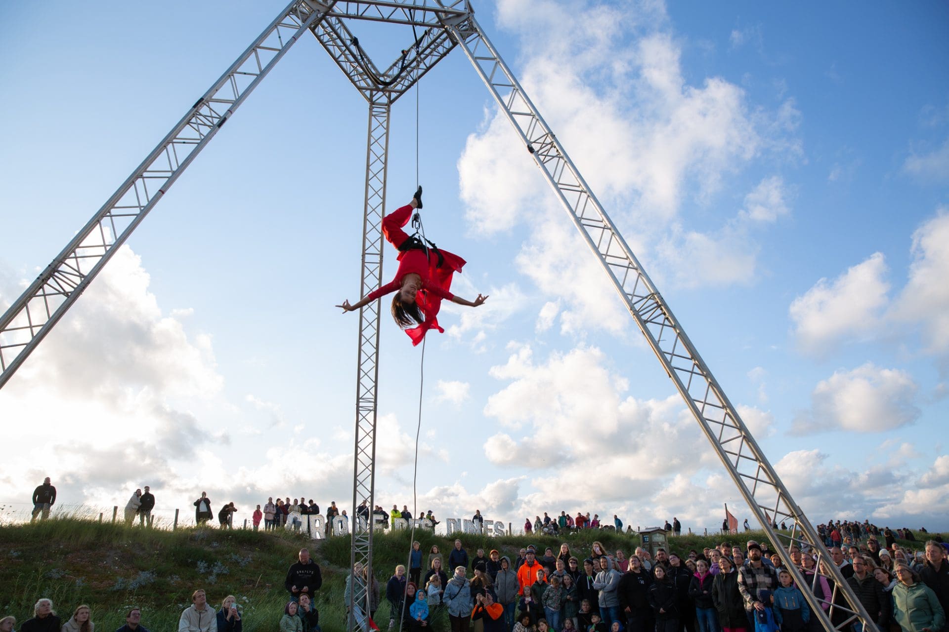 Slagwerkgroep Tempestade vormde een schouwspel op zich en was met opzwepende muziek een perfecte opwarmer voor Cirque des Dunes. De bezoekers werden vervolgens getrakteerd op twaalf spectaculaire acts. Van vuur-acts tot optredens in de lucht, met hun bijzondere kleding en attributen wisten de acrobaten hun toeschouwers veel ooohs en aaahs te ontlokken. De avond werd afgesloten met een grote lasershow.